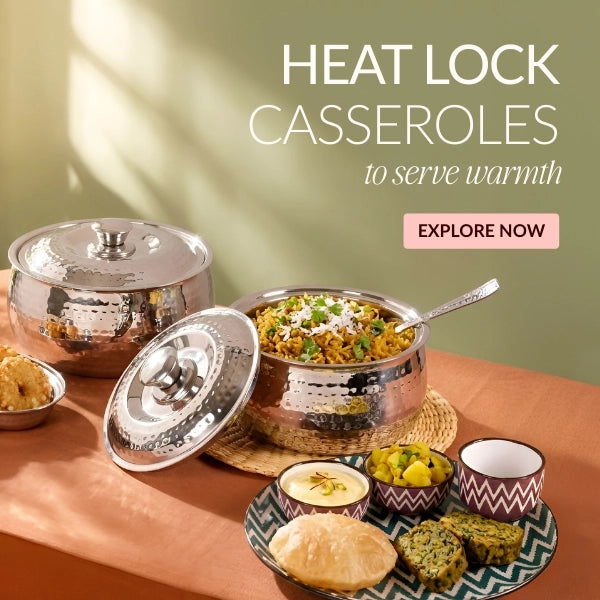 You can also lay the table spread that suits the ambience and occasion with glass or ceramic plates and bowls. With crockeries featuring dainty daisies to vibrant orchids, detailed golden rims on white plates to subtle gold splatters on luxe emerald plates, geometrically patterned crockeries to solid minimalist tableware, one can find one’s choice to showcase delicacies on.