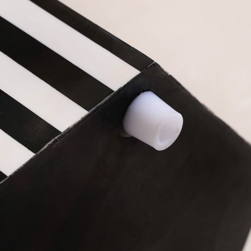 Absolutely! The resin outer layer of the coffee table features a smooth polished surface, making it effortless to wipe clean with a damp cloth. Regular dusting will help keep its black-and-white striped patterns looking sharp and vibrant.