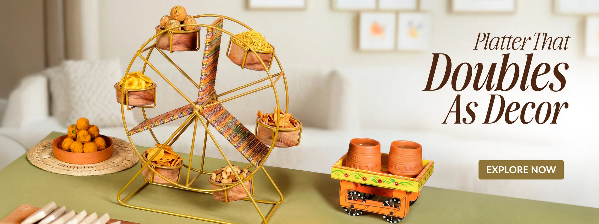 The wide range of decor objects is a great gifting option whether it's for birthdays, Mother’s Day, Father’s Day, Diwali, weddings, or any other occasion. The decor showpieces also beautify the mantle top or add a pop of colour to the study table. The range of decor objects includes dainty showpieces with trinket dishes (multifunctionality for the win!), dino decor objects that are a trend among children, chef decor objects that add a fun element to the kitchen, and rustic metallic showpieces to give a vintage charm to one’s home.