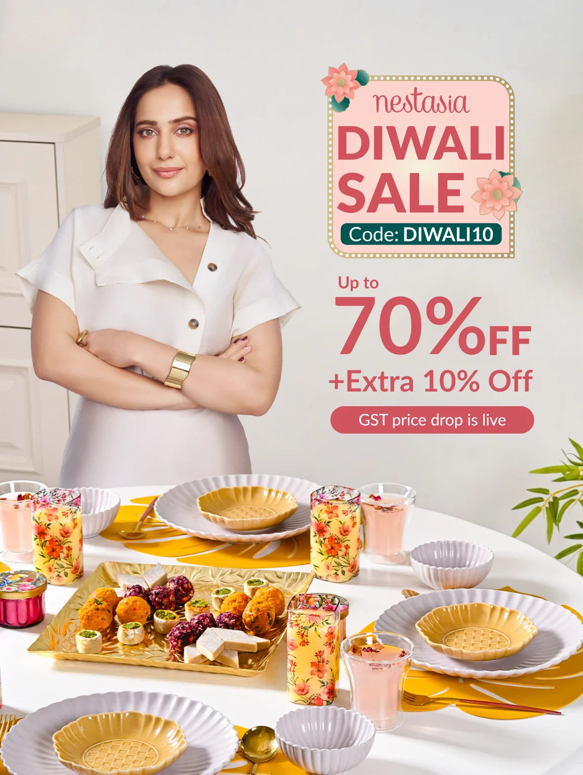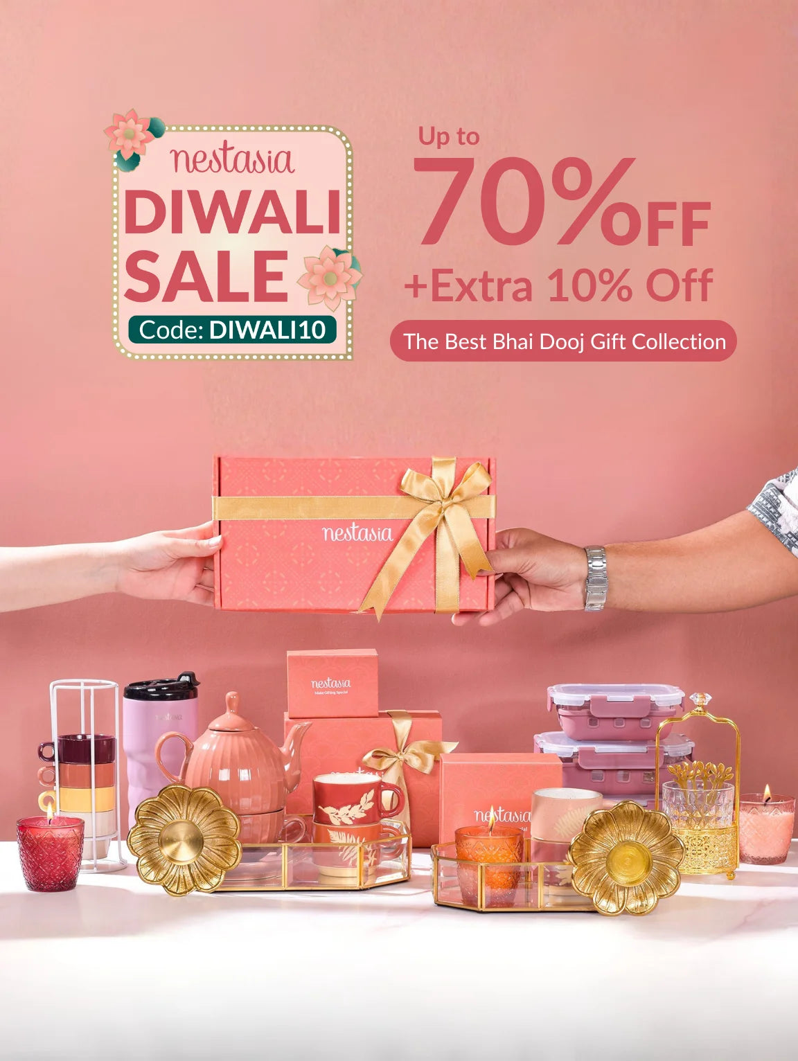 Discover an enchanting array of Diwali gifts and festive hampers at Nestasia! Jazz up your celebrations with our curated collection of exquisite home decor accessories, dinnerware, crockery, and more. From elegant dinner sets to intricately designed candles, our offerings embrace the spirit of Diwali. Share the joy with friends and family through thoughtful presents that elevate the festive spirit. Explore our Diwali gift range today and add a touch of elegance to your festivities. Light up your Diwali with Nestasia's extraordinary gifts!
