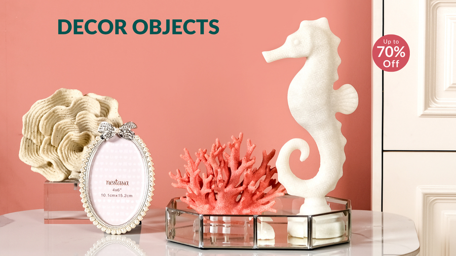 The wide range of decor objects is a great gifting option whether it's for birthdays, Mother’s Day, Father’s Day, Diwali, weddings, or any other occasion. The decor showpieces also beautify the mantle top or add a pop of colour to the study table. The range of decor objects includes dainty showpieces with trinket dishes (multifunctionality for the win!), dino decor objects that are a trend among children, chef decor objects that add a fun element to the kitchen, and rustic metallic showpieces to give a vintage charm to one’s home.