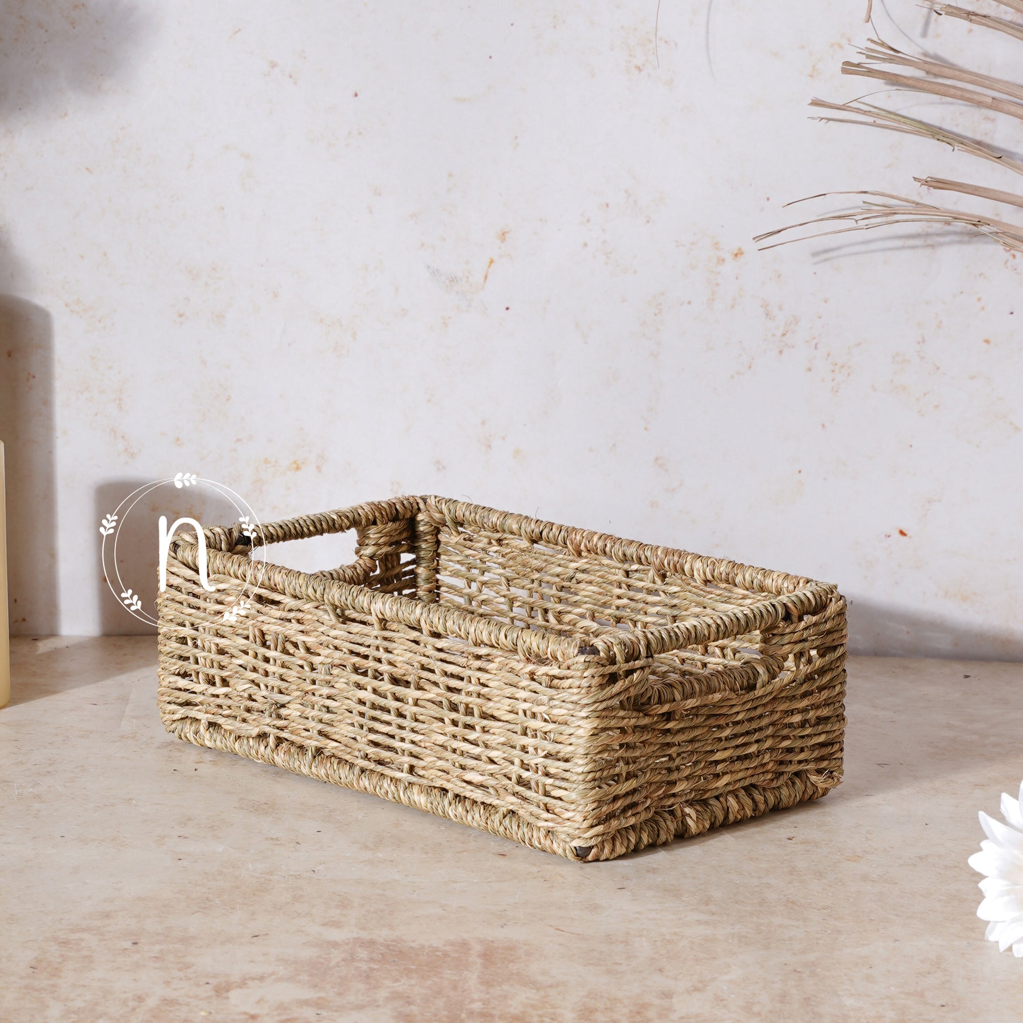 These 2 baskets really add the aesthetic value to your living room or dining room . I used them to keep all the water bottles . Really a beautiful addition . Loved it