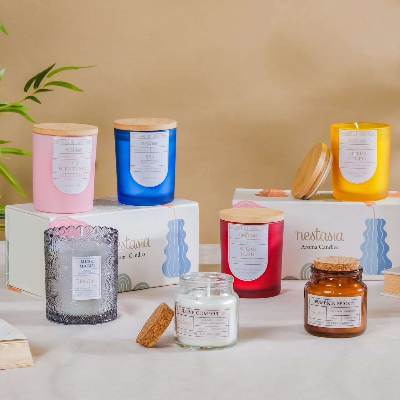 Aesthetic: The candles that Nestasia sells are excellent design items in addition to being sources of fragrance. The beautiful designs, such as the printed tin candles or bright colour scented candle votives, improve the aesthetics of any area and lend it a sense of class.