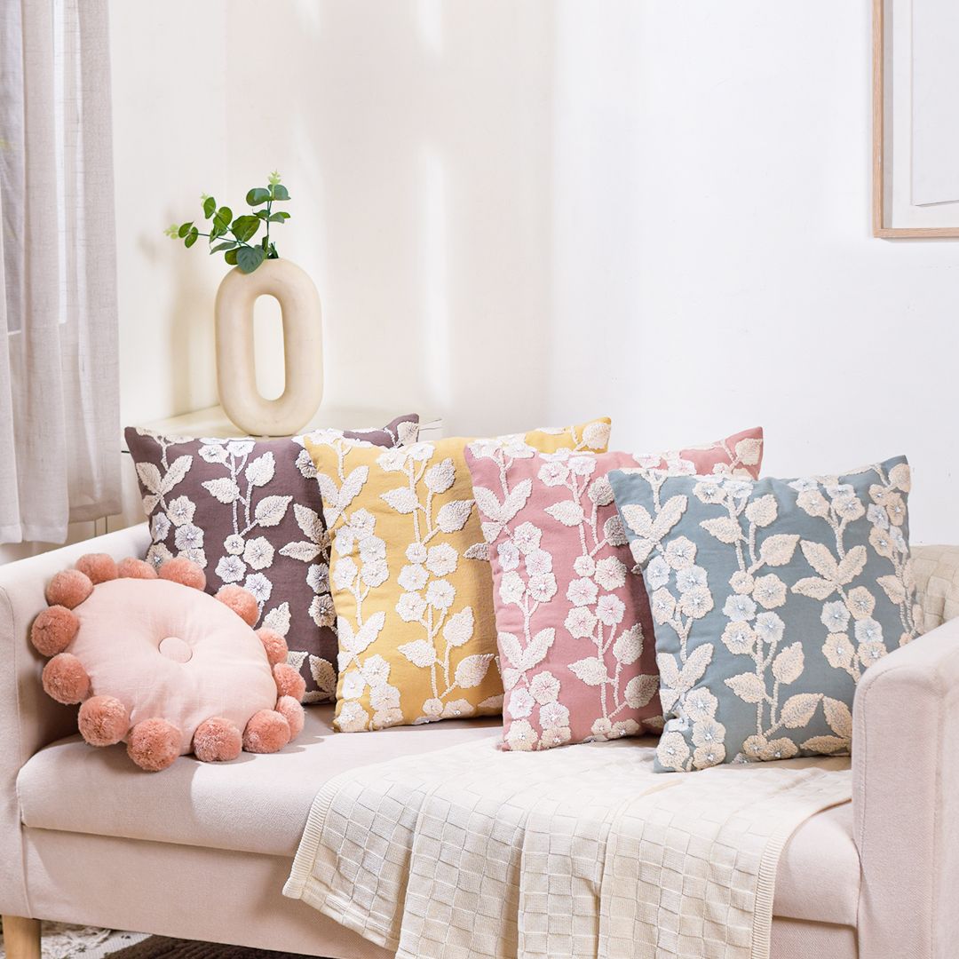 Botanical Embroidered Cushion Cover 16x16 Inch Rs.895