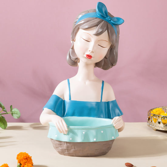 The lovely Lady with Basket showpiece is a multifunctional and endearing work of art that also serves as a useful storage solution. This showpiece, which was meticulously crafted, depicts a stunning girl holding a delicate basket. The "Girl with Basket" is ideal for keeping little objects like earrings, cufflinks, and other treasures in storage in addition to its aesthetic appeal. With its thoughtful construction, you can easily organise and get to your items. This showpiece provides a touch of elegance to any area while keeping your prized possessions secure and organised, whether it is positioned on a vanity, dresser, or shelf.