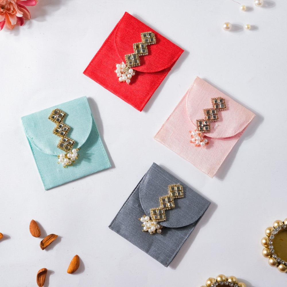 The joy of glorious occasions is best shown by the smiles and colours around. Hence, the affection shared with dear ones should also be done in a colourful way. Nestasia's festive envelopes are embellished with beads of white and gold colour to convey your wishes in the form of the most exquisite "shagun ke lifafe". The set of 4 shagun envelopes is an assortment of 4 jubilant colours- to suit the choices of friends and family.