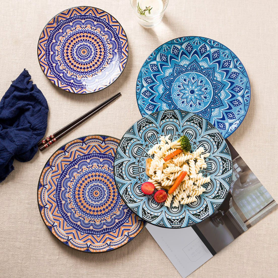 Whether you're hosting a formal dinner or enjoying a casual family meal, the Mandala Dinnerware Collection brings a touch of sophistication and cultural richness to every occasion. Elevate your dining experience and make every meal a celebration with Nestasia's beautifully designed mandala dinnerware set. We have a huge collection of mandala snack plates that will cater to all your dining needs.