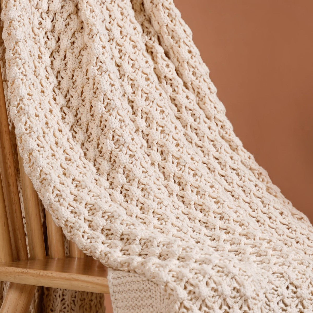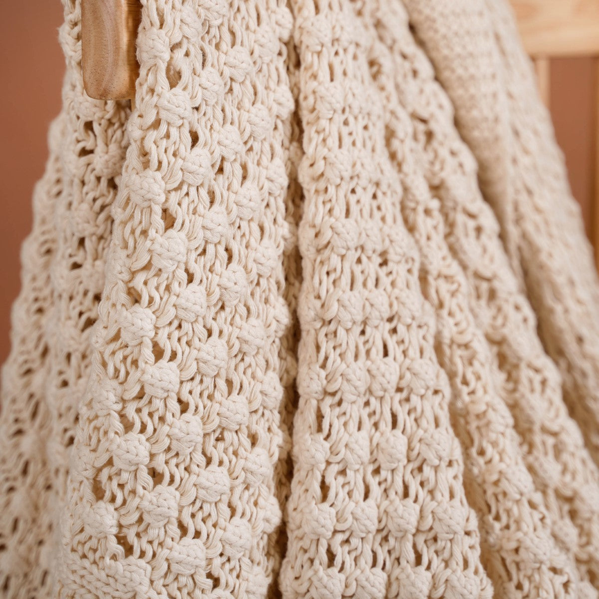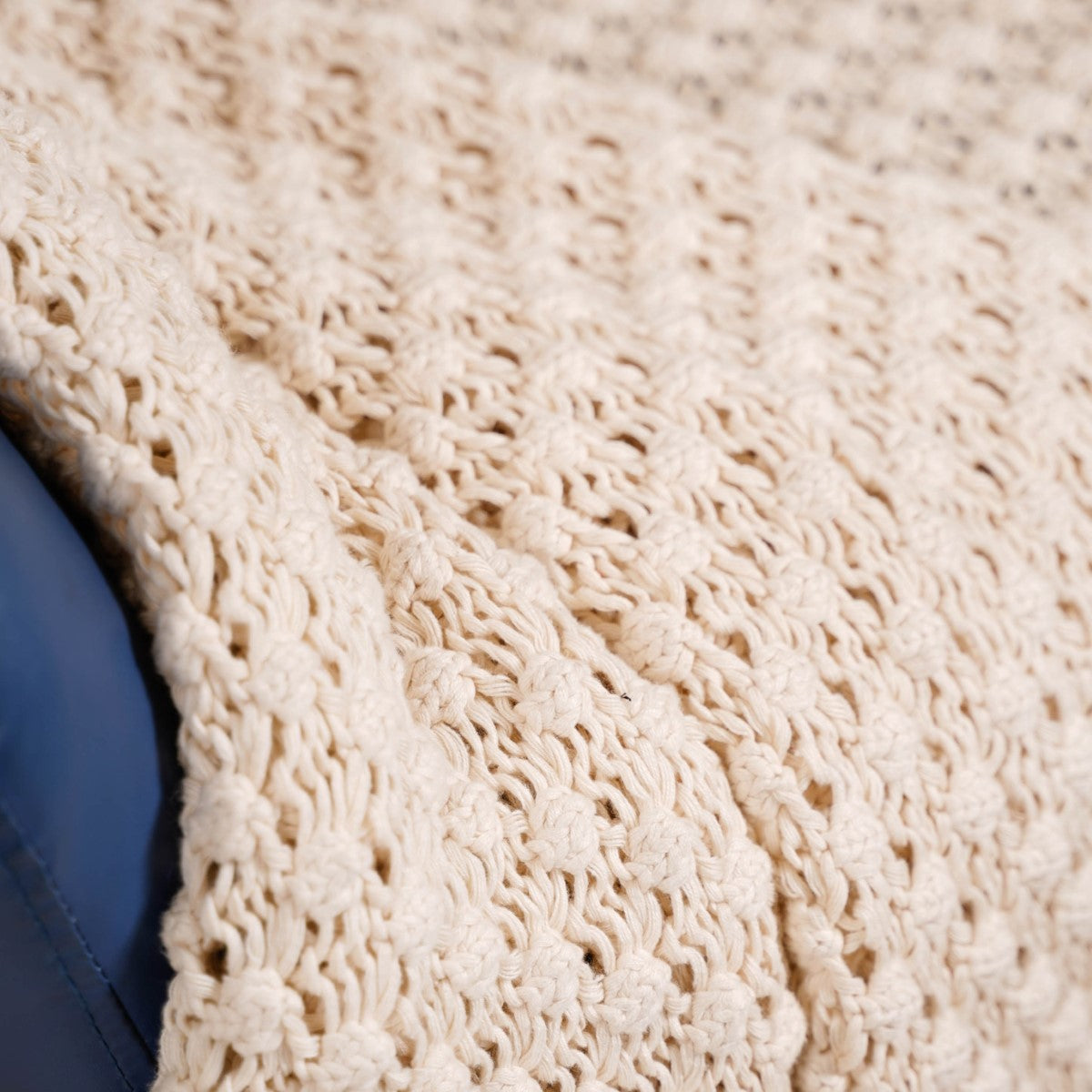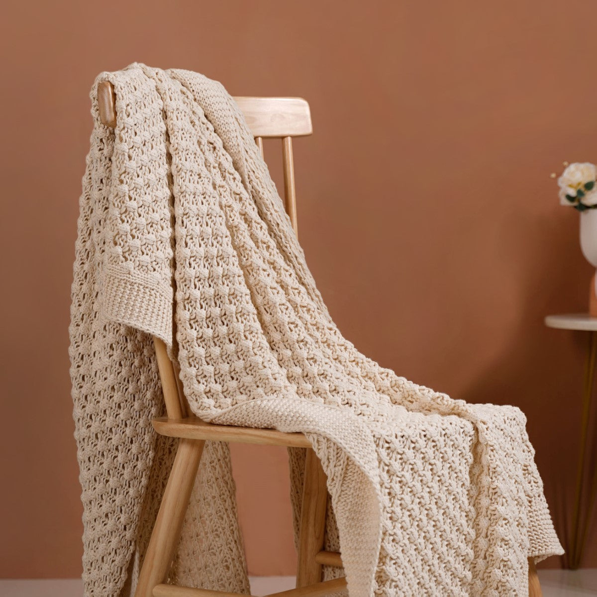 This throw blanket stands out due to its exquisite handcrafted pattern that adds a touch of elegance to your home decor. Crafted from pure cotton, this blanket is a luxurious addition to your space. Besides that, it is lightweight and feels incredibly soft, making it a great addition to your home.