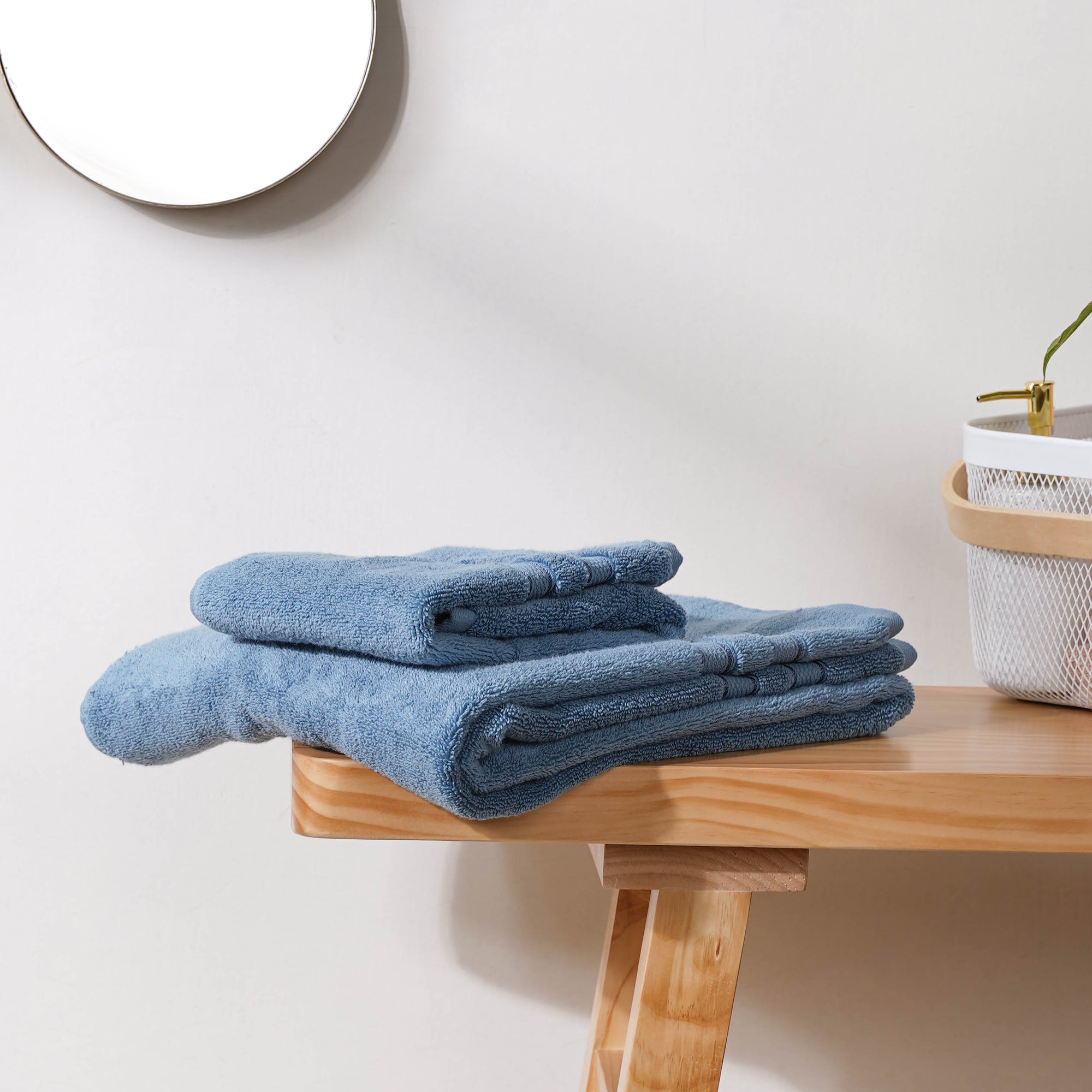 This blue towel set delivers a lovely experience after each usage because it is made from superior quality super absorbent ultra-soft cotton fibers. The high absorbency enables speedy drying while the soft texture feels pleasant against your skin. These luxuriously soft towels are made to pamper you with their great quality and comfort. Wrap yourself in their plush softness as they are ideal for enhancing your everyday routine, whether you're getting out of the shower or need a cool hand towel.