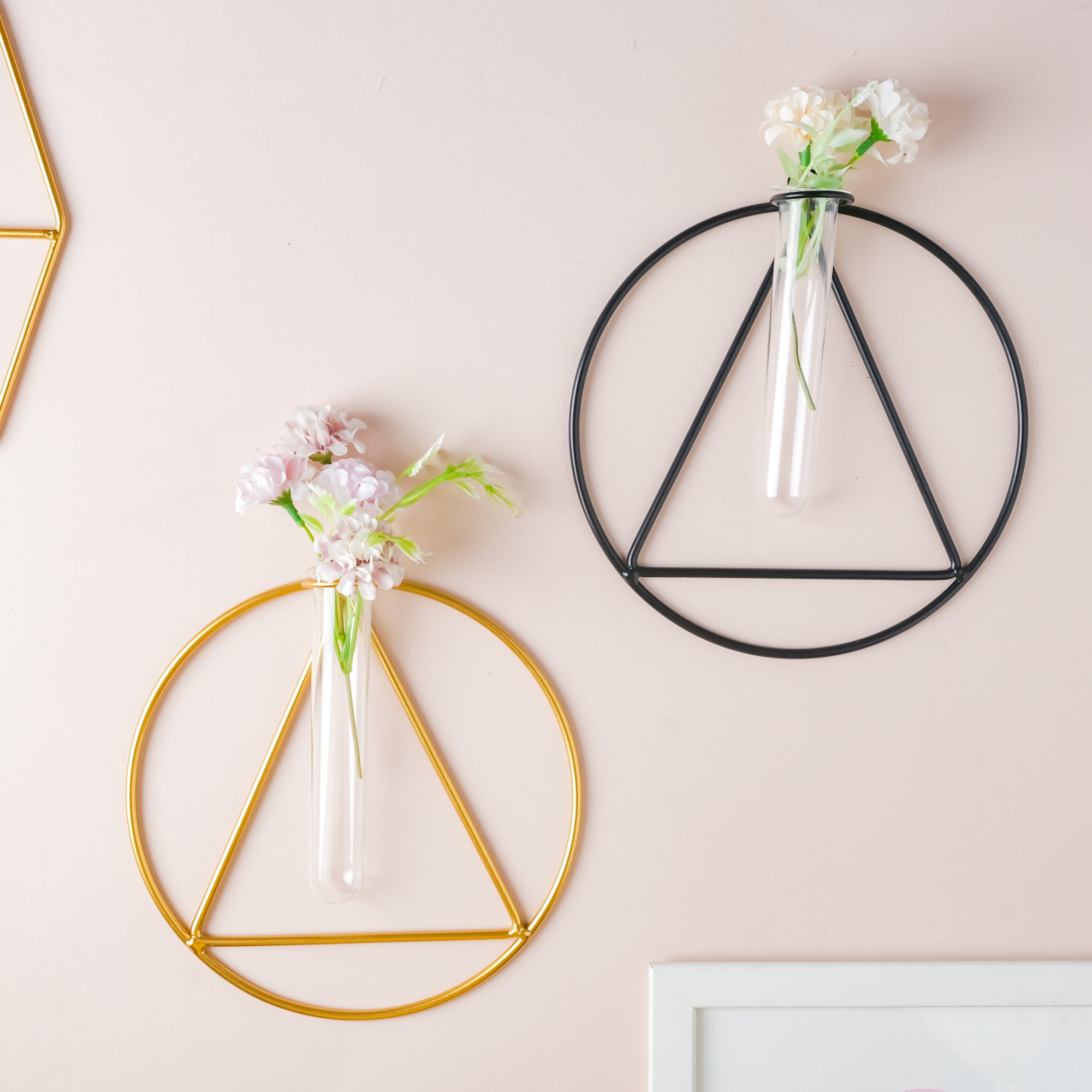 Hanging planters are in this season. Introduce some much-needed greenery into the house with the hanging tube vases - with metal support in two attractive colors - black and gold. The metal flower pot with the glass tube can be placed from the ceiling or the door of a balcony, bedroom or living room area. The beautiful round planters also work as really great gifts.