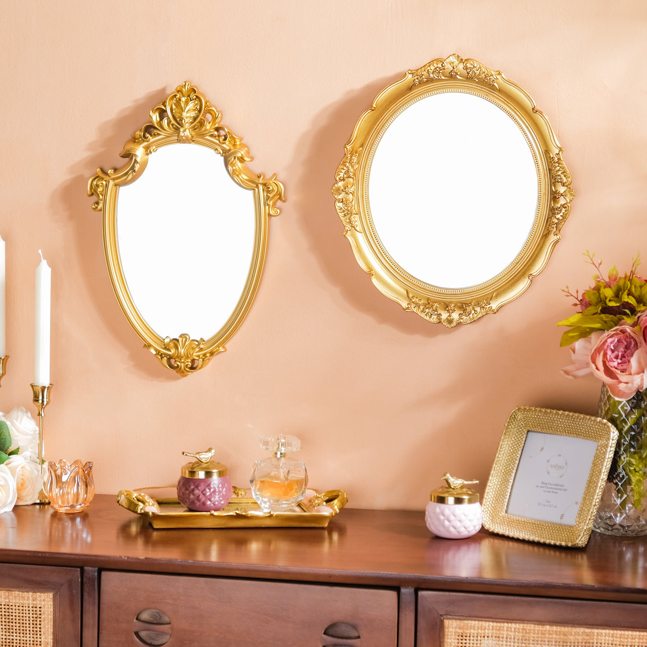 One of the popular types of bathroom wall mirror, vanity mirror or bedroom wall mirrors available at Nestasia is the decorative mirrors. These mirrors feature unique and ornate frames that add a touch of elegance and sophistication to any space. Most of the decorative mirrors in the collection feature frames made from metal.
