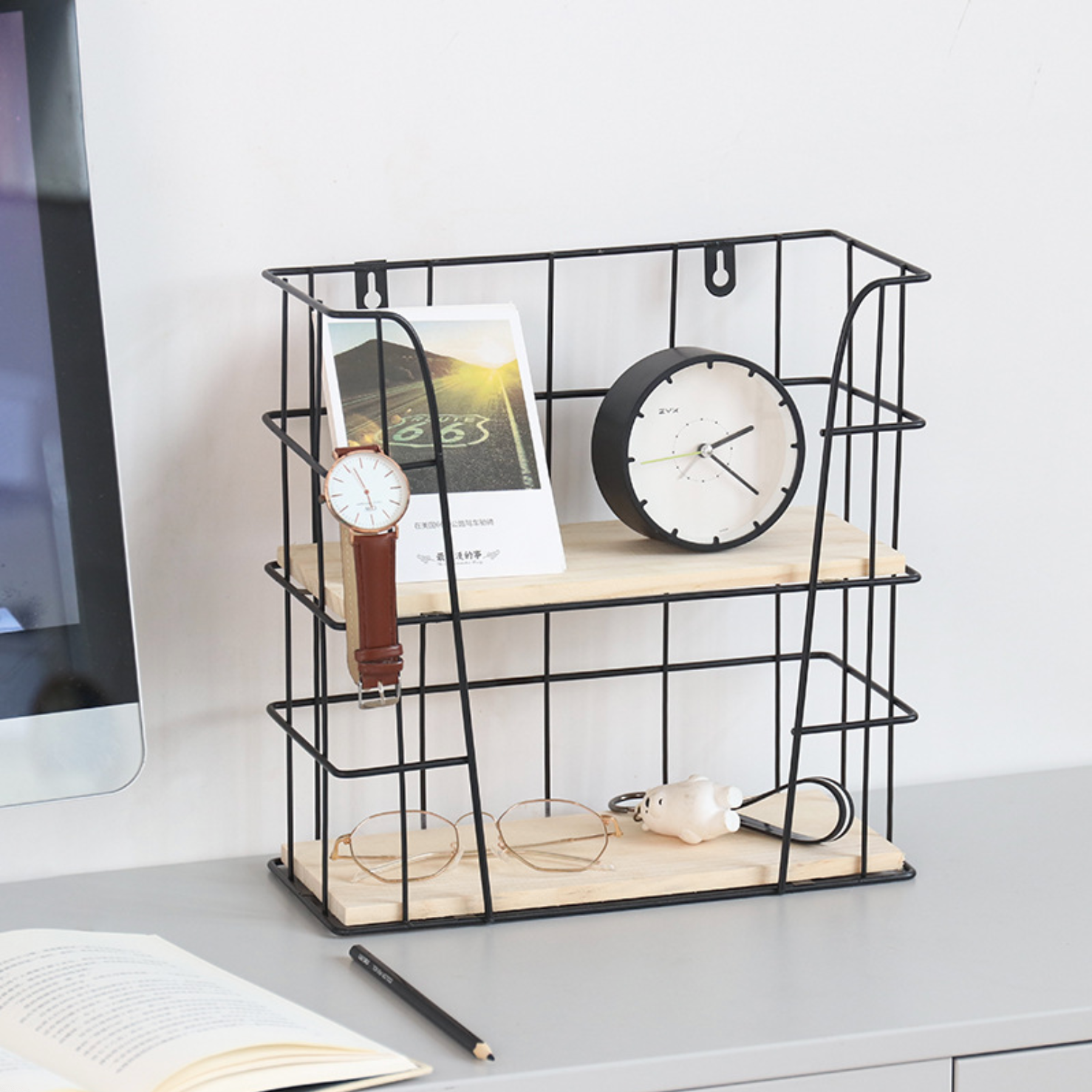 The rectangle black two tier wall shelf has two shelves that can either be mounted on the wall or even kept on a surface as a table shelf. It can be placed in the bedroom, living room, alleyway, home office or even restrooms to arrange all mini curios, flower planters and other collectibles.