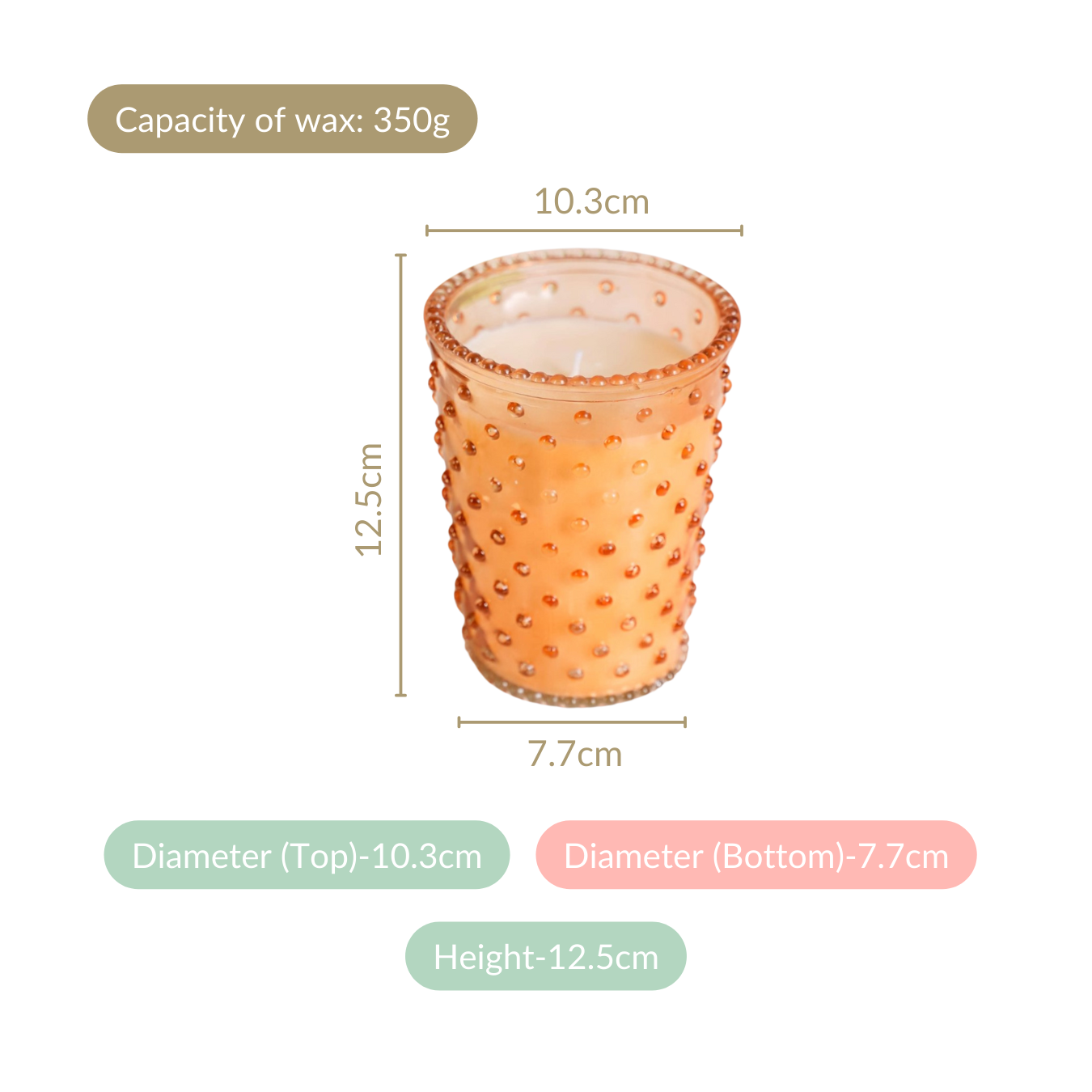 Design: The perfect way to add a modern touch to your space, these scented candles were meticulously handcrafted from high-quality glass and soy wax. The chicly whimsical dotted pattern adds a touch of sophistication to your decor, while the vibrant colours just make them pop.