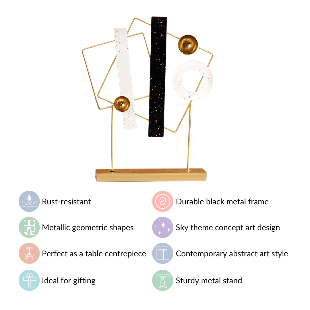 The table decor boasts a cosmic sky theme with an arrangement of overlapping geometric metal components that symbolise elements of the cosmos in the grand scheme of things. The evocative concept and premium quality metal construction make it a riveting addition to one's decor.