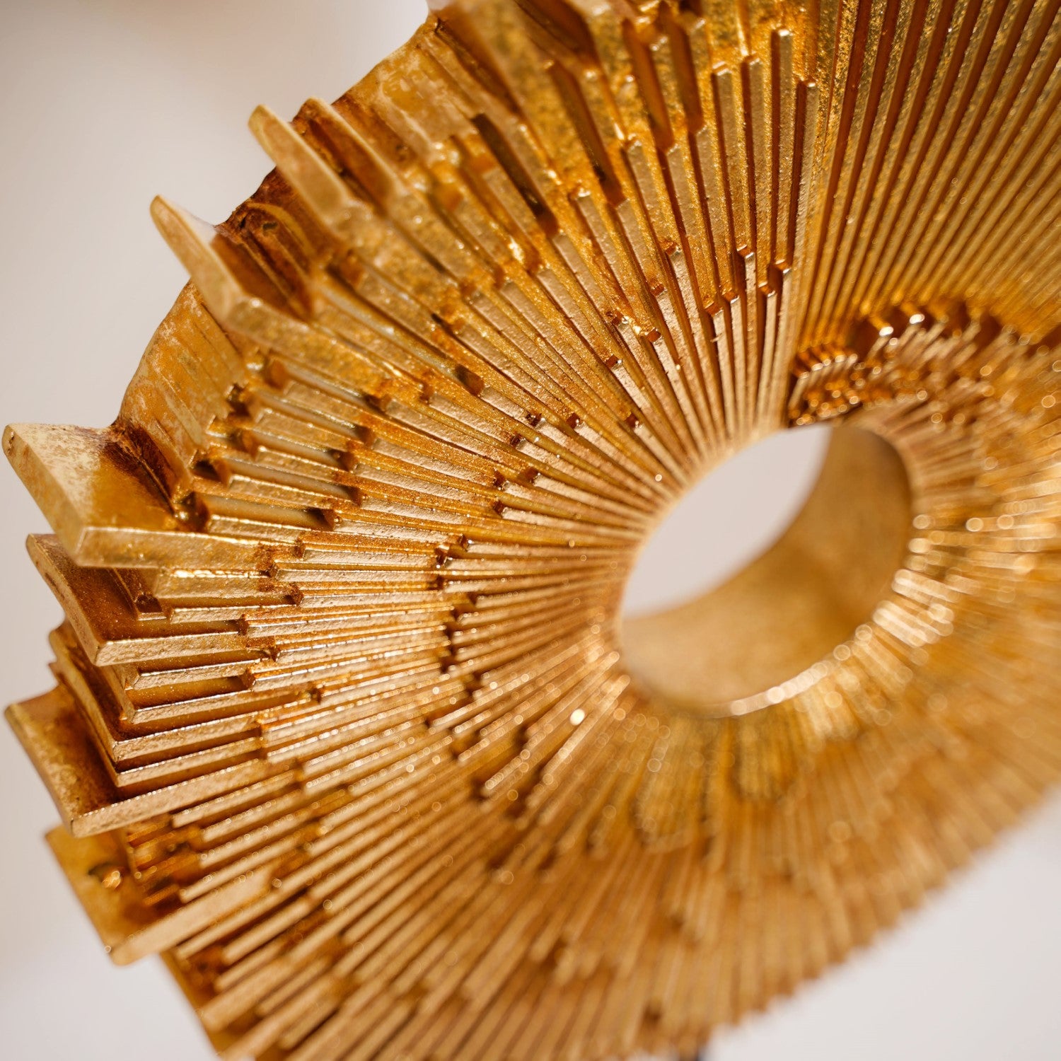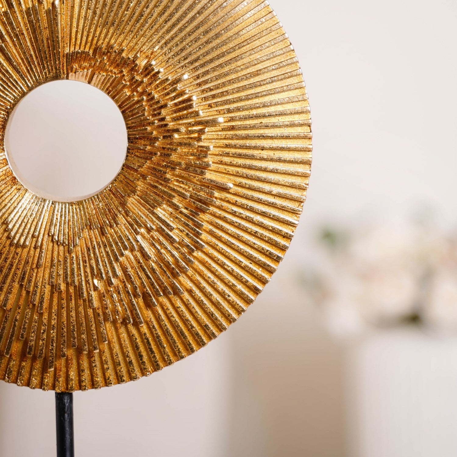No, the gold colour doesn't flake over time. However, if exposed to sunlight for an extended period, the colour can begin to fade and flake. Therefore, it's advised to keep the Abstract Ammonite showpiece indoors.