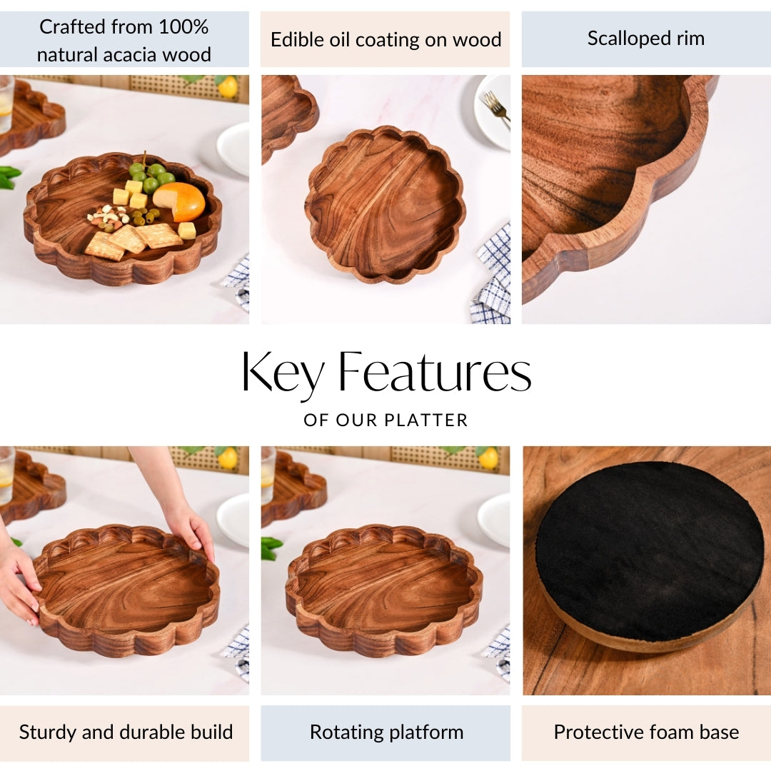 Acacia Scalloped Lazy Susan Serving Platter 30cm
