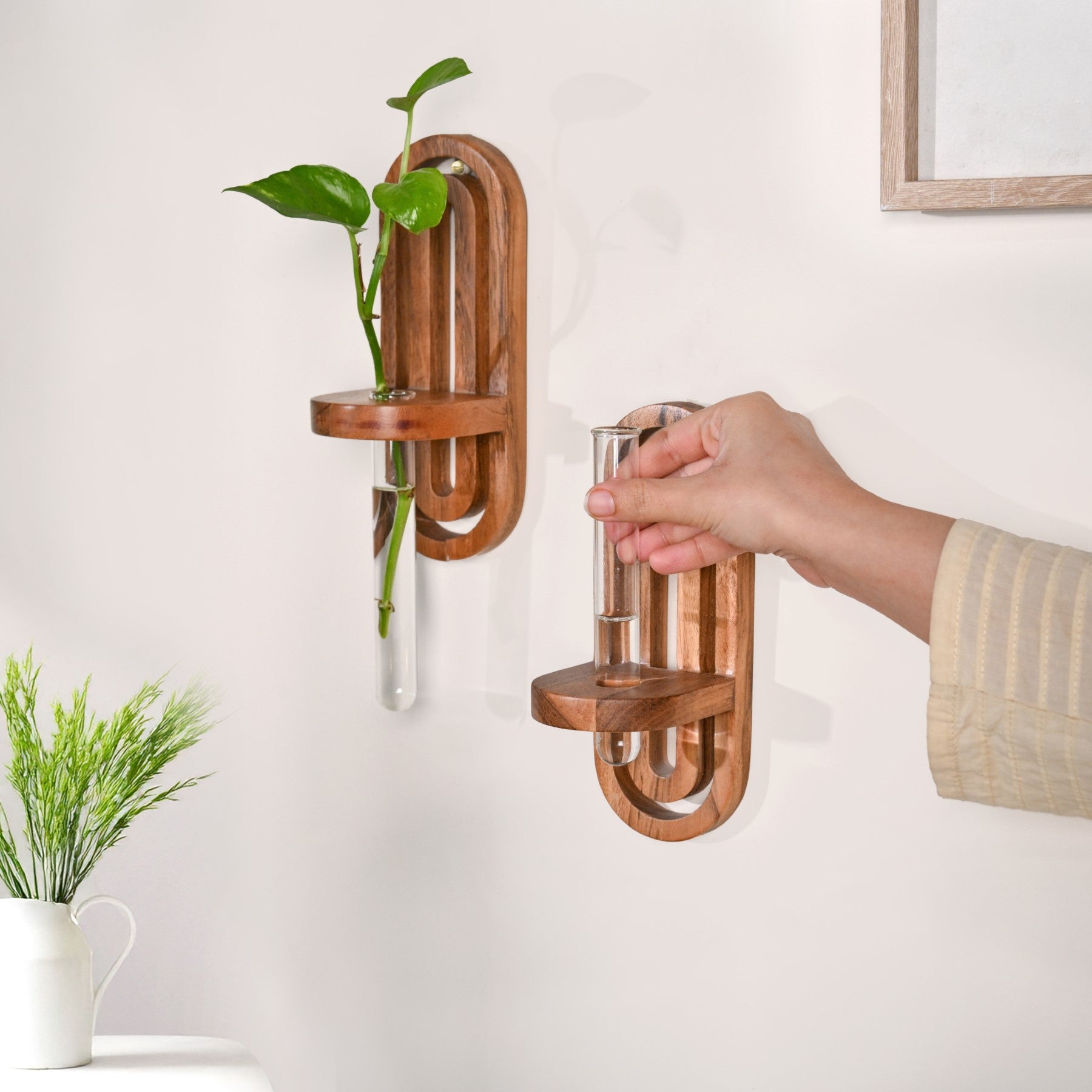 Acacia Wall Hanging Test Tube Planter Duo