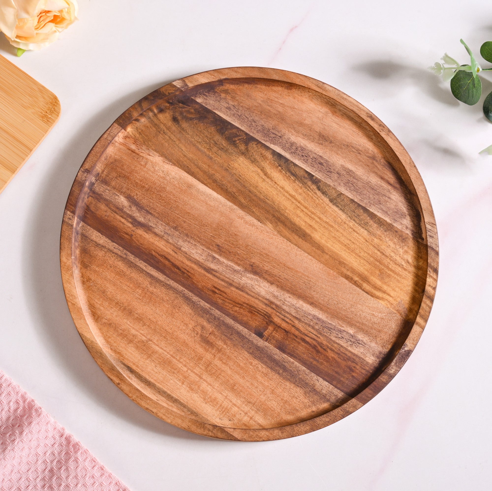Round acacia wood base
