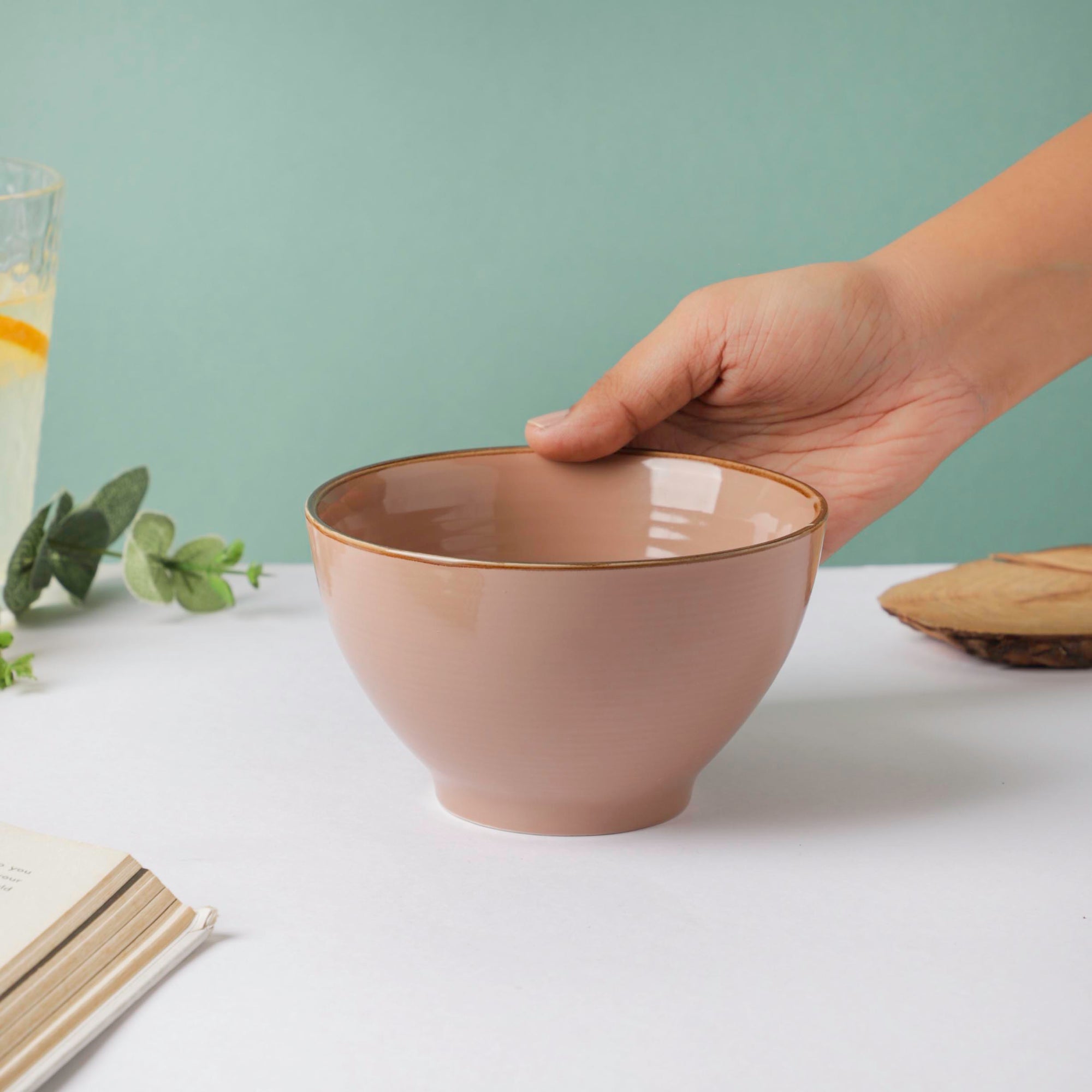 Ceramic serving ware is particularly known for being a safe and healthy choice. Tastefully created with a matte finish, the adora glossy ceramic soup bowl is coated with a salmon-pink hue which makes it very appealing. The adora rimmed bowl is a classic addition to the collection of tea-time crockery since it is pristine and sturdy as a snack bowl too. Cookies and other tea-time snacks can be stored and served in the pink ceramic bowl.