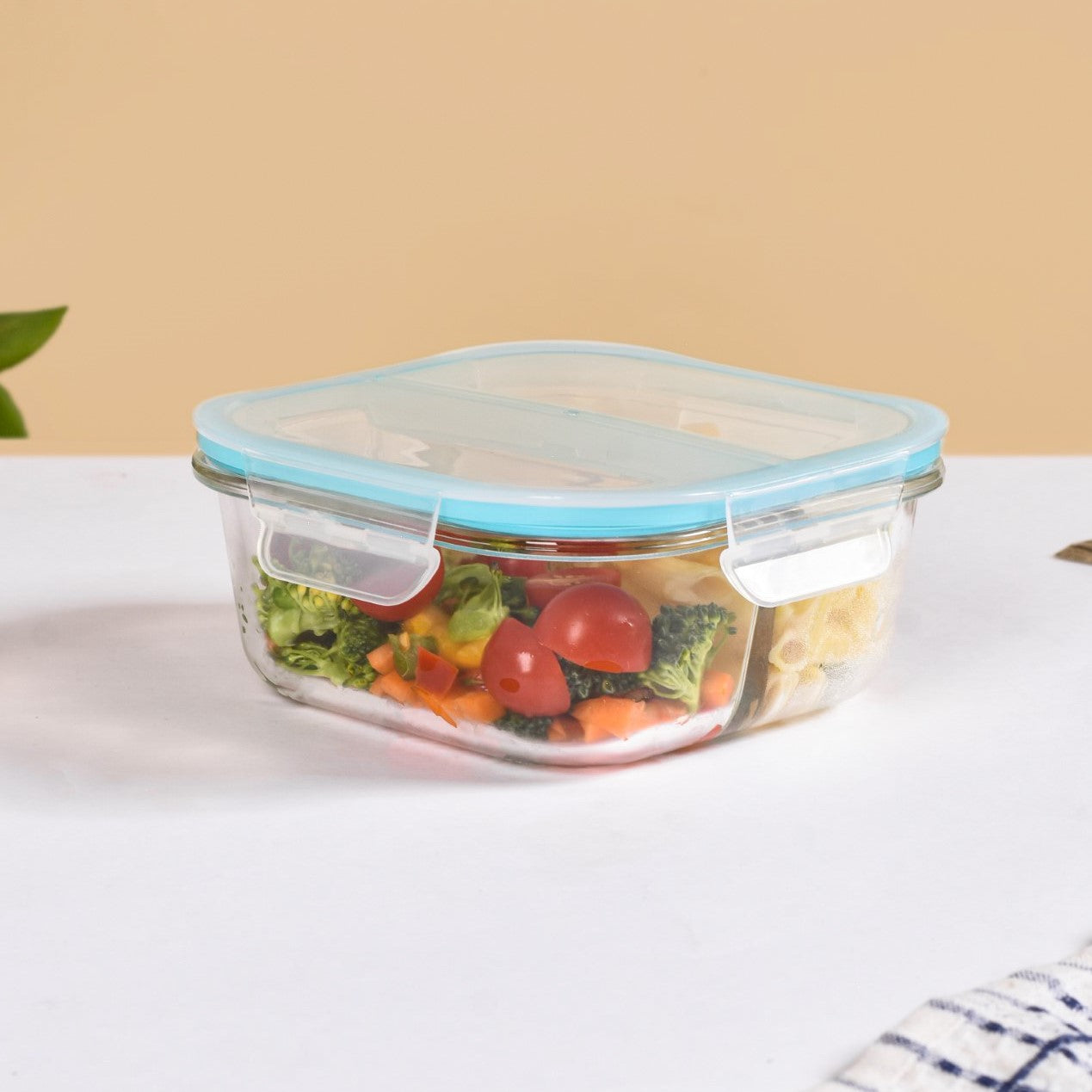 Introducing our premium-grade glass lunch box, the ideal companion for your meals on the go. It is made with environmentally friendly, lead-free, and food-safe materials to protect your health and maintain sustainability. The borosilicate glass material of the tiffin box ensures durability and allows for hassle-free reheating in the microwave. The airtight lid with clip locks on all four sides and a silicone ring ensures leak-proof convenience. The glass tiffin box has two separate compartments offering ample space to carry a nutritious and wholesome meal. This leak-proof lunch box is easy to clean and makes the perfect gift for health-conscious individuals.