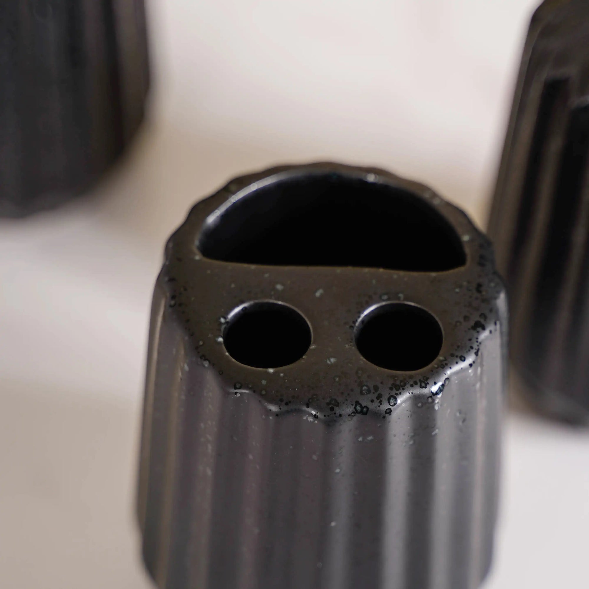 The toothbrush holder is thoughtfully designed providing a dedicated space for your toothbrushes and other essentials. This design promotes a clutter-free and well-organized bathroom countertop. The exquisite design of the toothbrush holders is not only great for organization but also for aesthetic appeal.