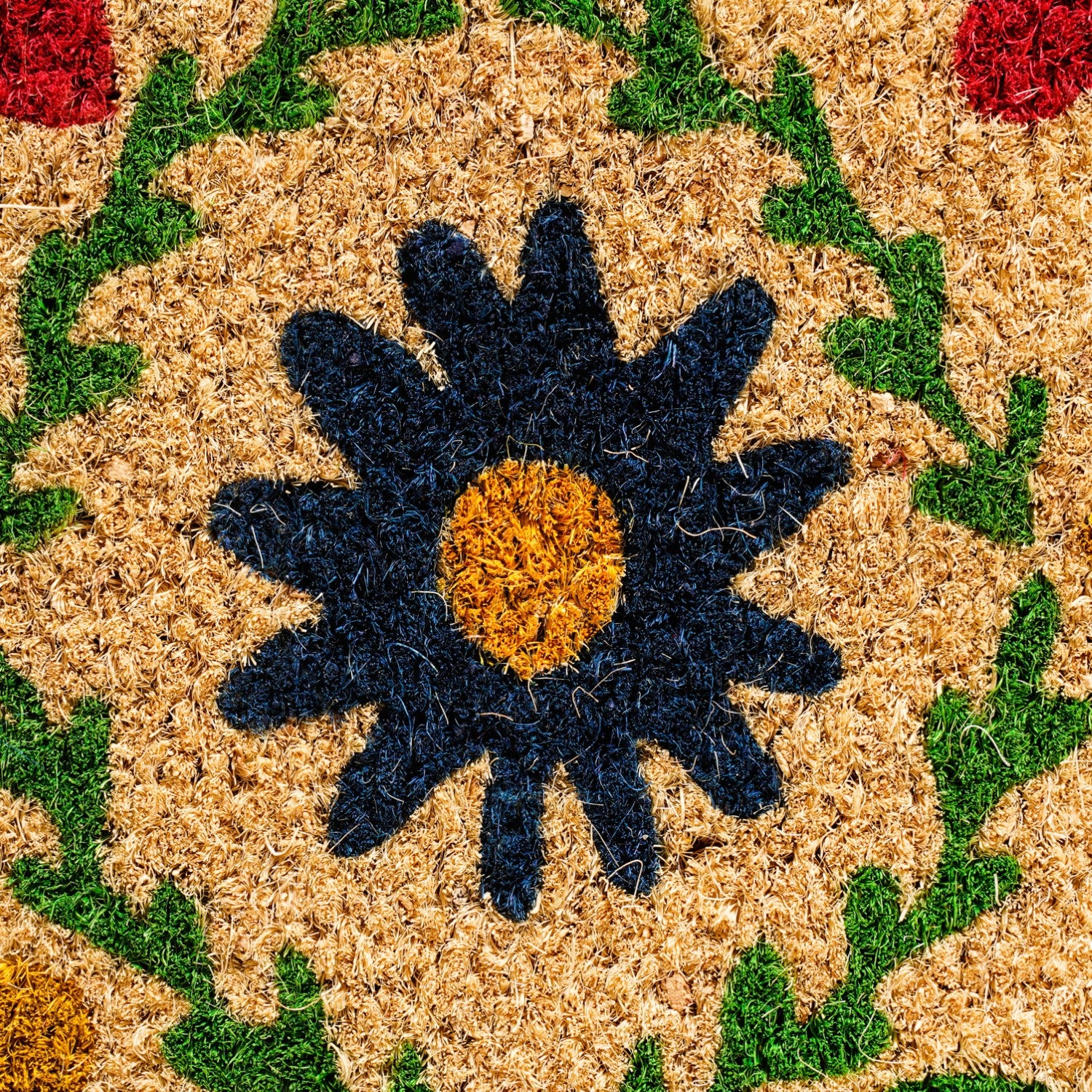 All Natural Coir Floor Mat With Floral Design 36x24 Inch