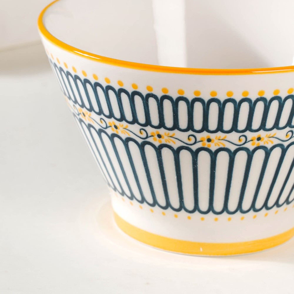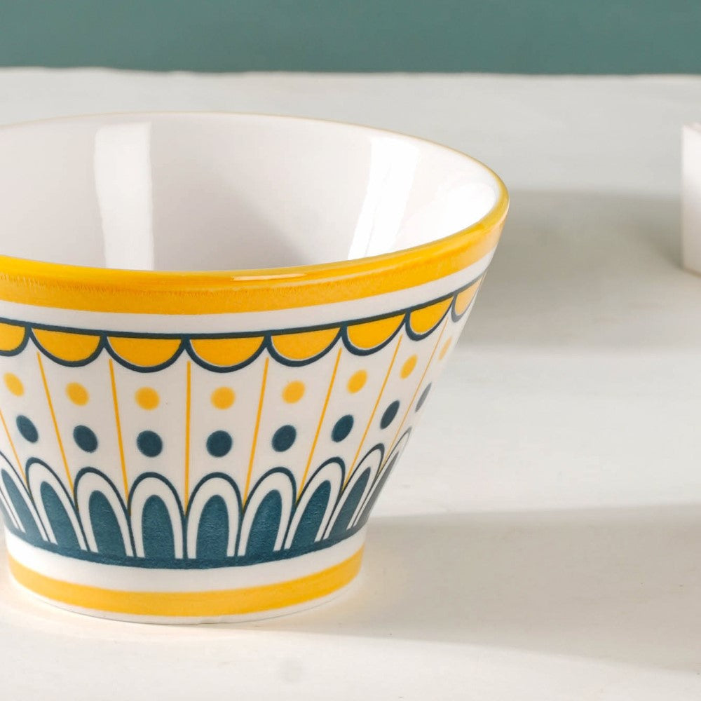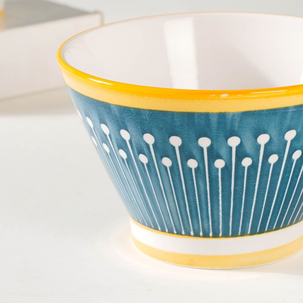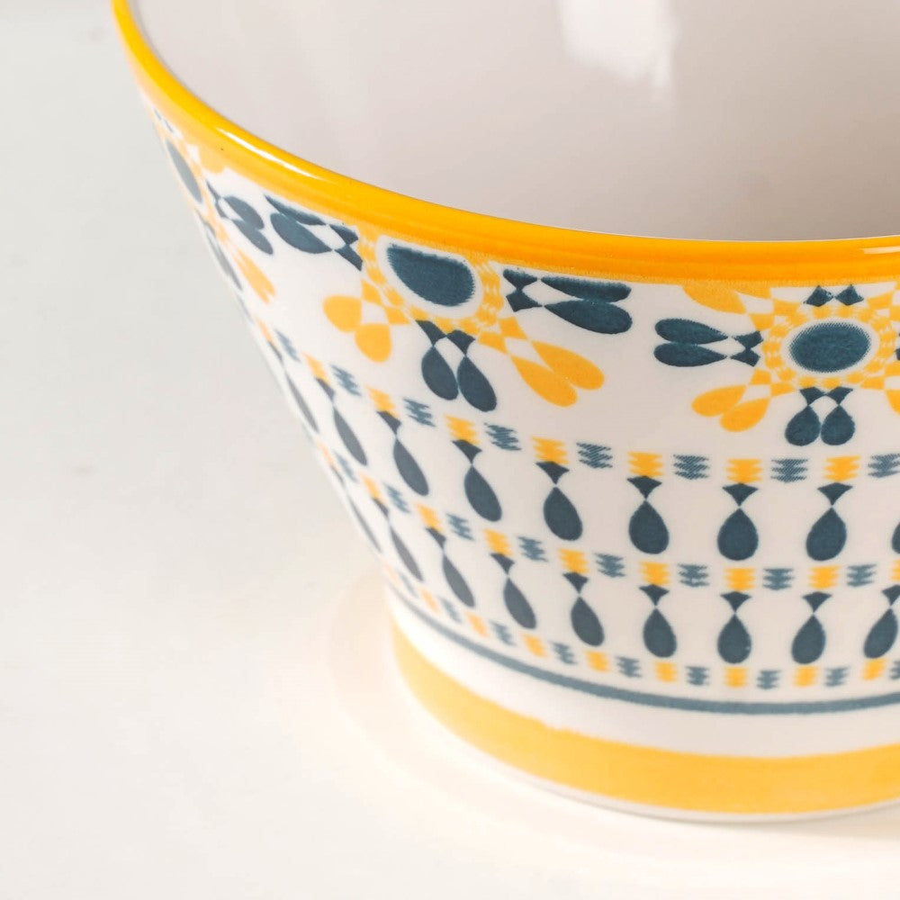 Introducing our exquisite Aloha ceramic snack bowl set, a harmonious blend of elegance and versatility. Crafted with meticulous attention to detail, each bowl showcases a unique pattern, adding a touch of individuality to your dining experience. The enchanting white, yellow, and blue colour scheme unifies the set, evoking a sense of serenity and cheerfulness. Perfect for serving delectable treats, these bowls effortlessly elevate any table setting, be it casual gatherings or special occasions. Made from high-quality ceramics, they offer durability and easy maintenance. Let these captivating bowls adorn your home, infusing every mealtime with style and sophistication. Elevate your snacking experience with our remarkable Aloha snack bowl set today.