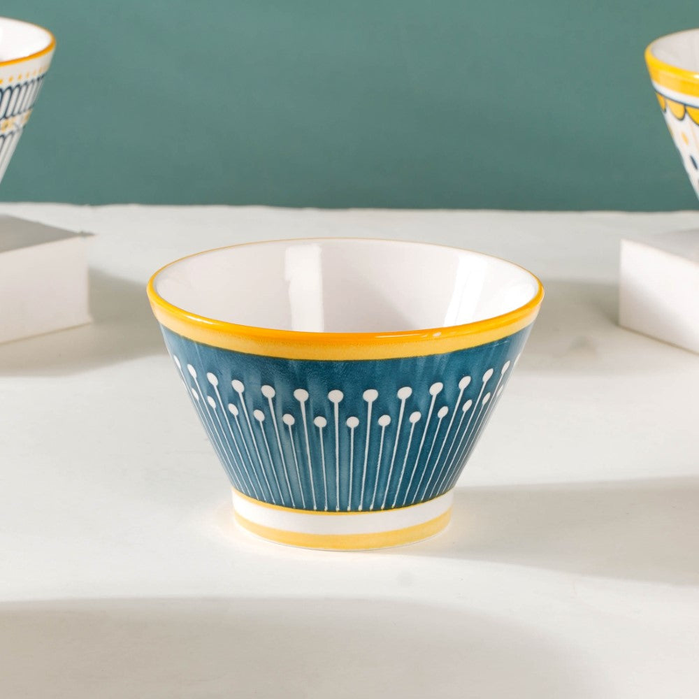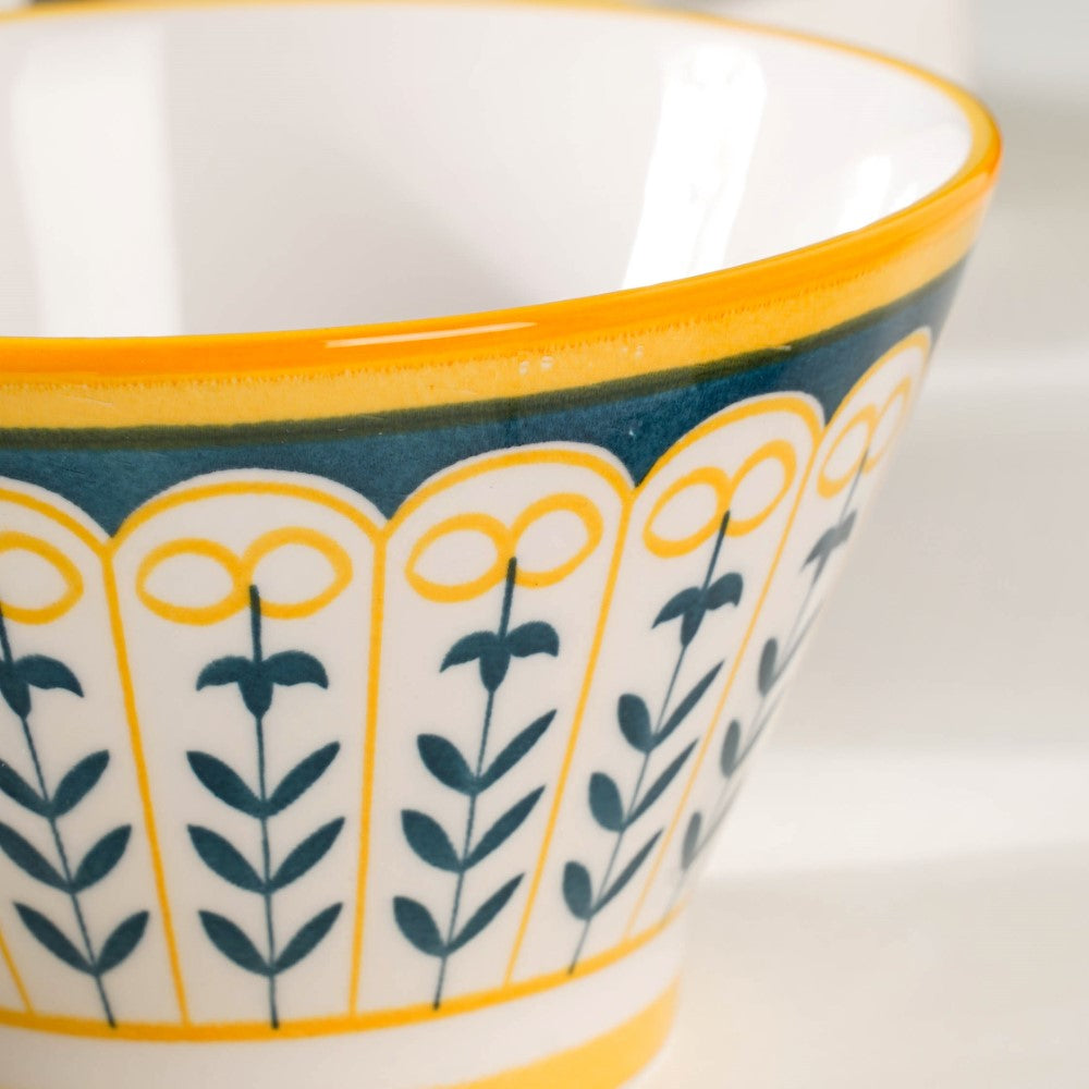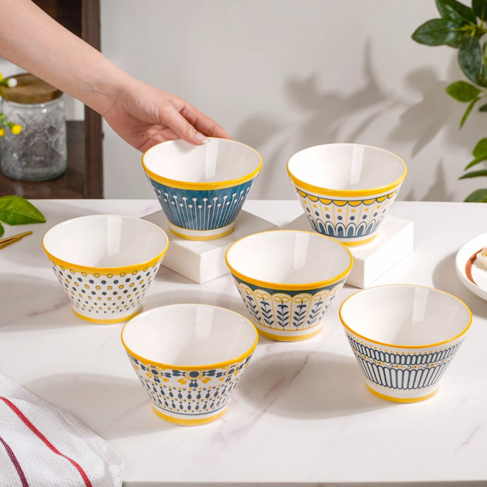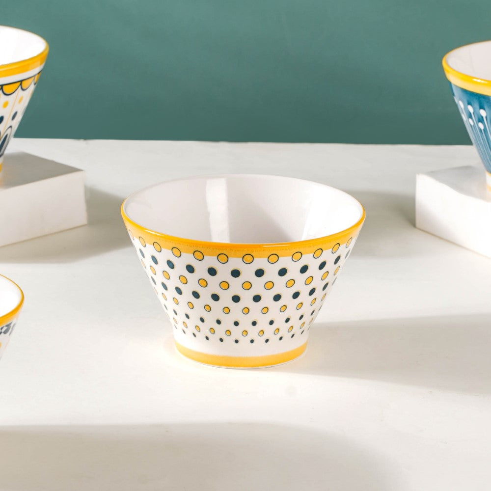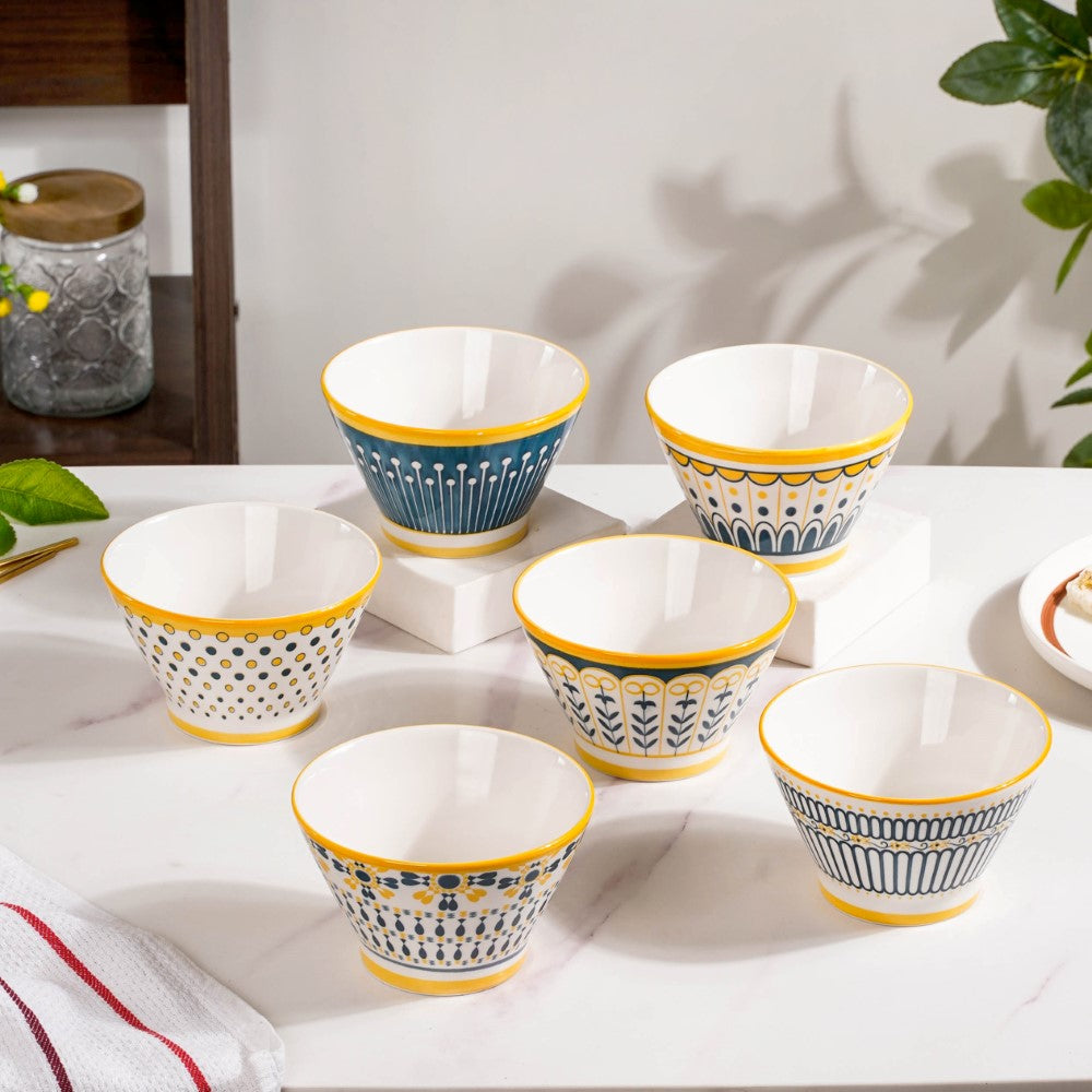 Introducing our exquisite Aloha ceramic snack bowl set, a harmonious blend of elegance and versatility. Crafted with meticulous attention to detail, each bowl showcases a unique pattern, adding a touch of individuality to your dining experience. The enchanting white, yellow, and blue colour scheme unifies the set, evoking a sense of serenity and cheerfulness. Perfect for serving delectable treats, these bowls effortlessly elevate any table setting, be it casual gatherings or special occasions. Made from high-quality ceramics, they offer durability and easy maintenance. Let these captivating bowls adorn your home, infusing every mealtime with style and sophistication. Elevate your snacking experience with our remarkable Aloha snack bowl set today.