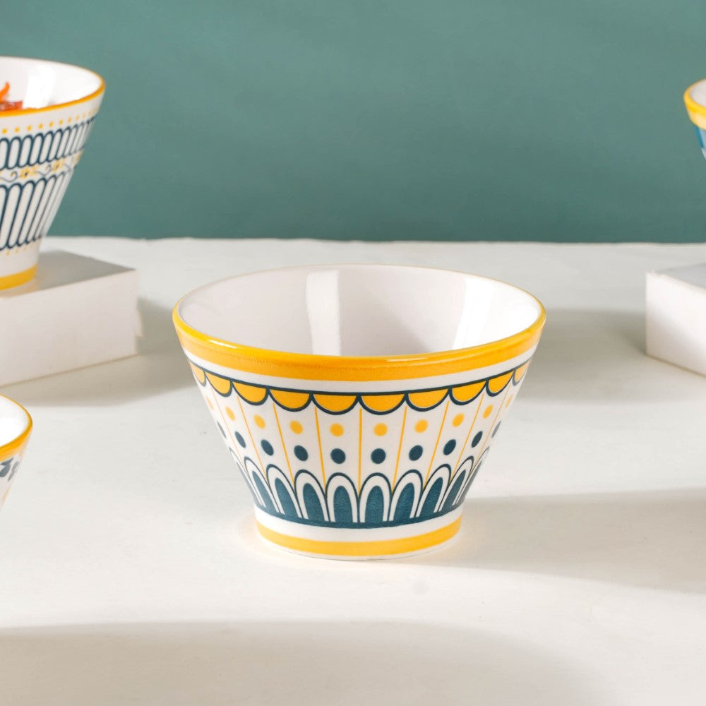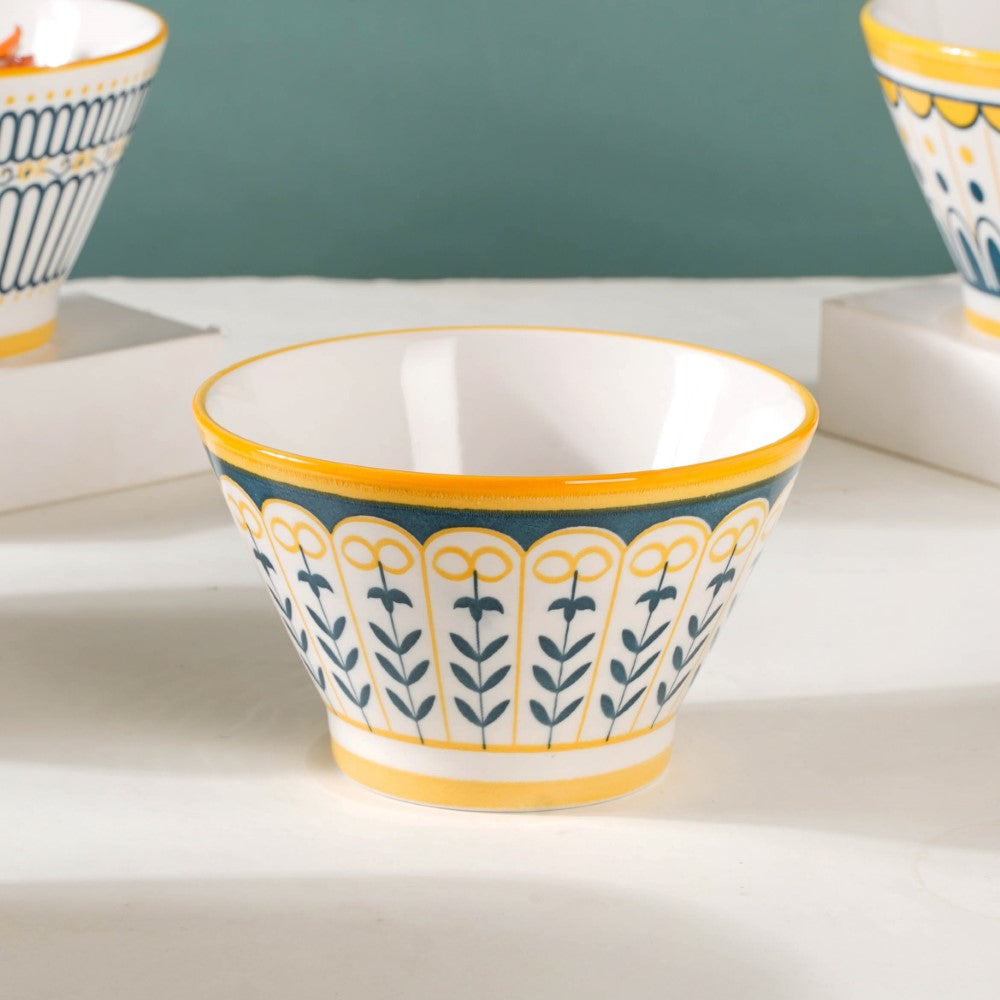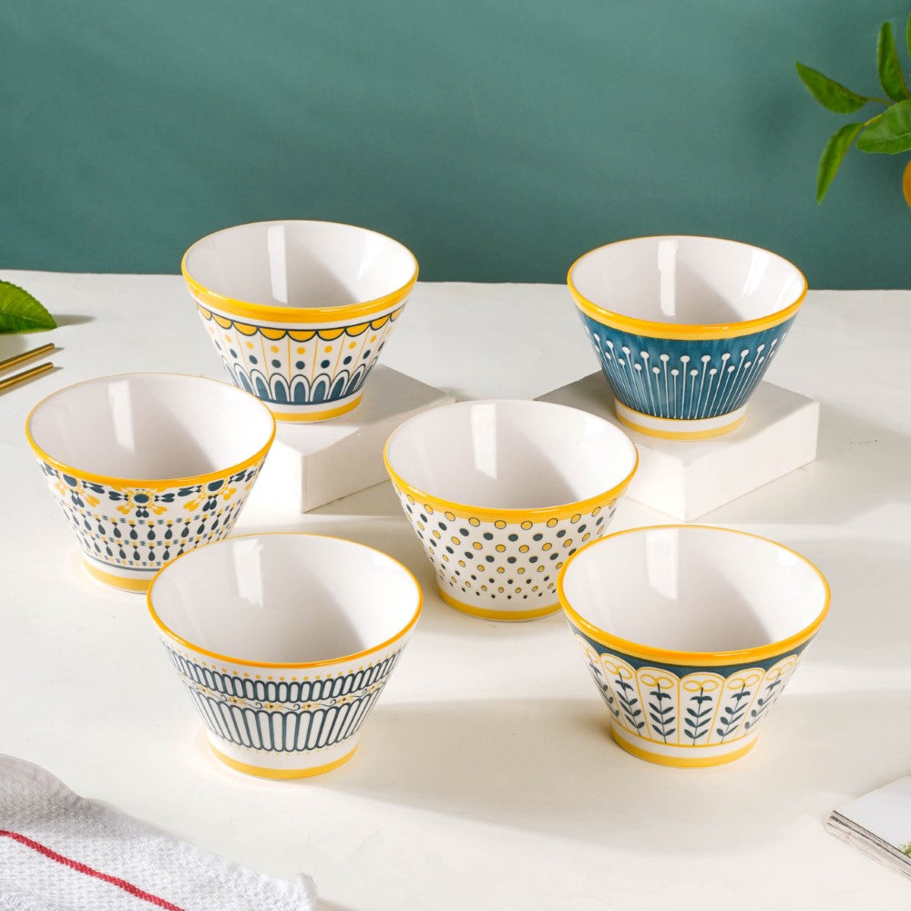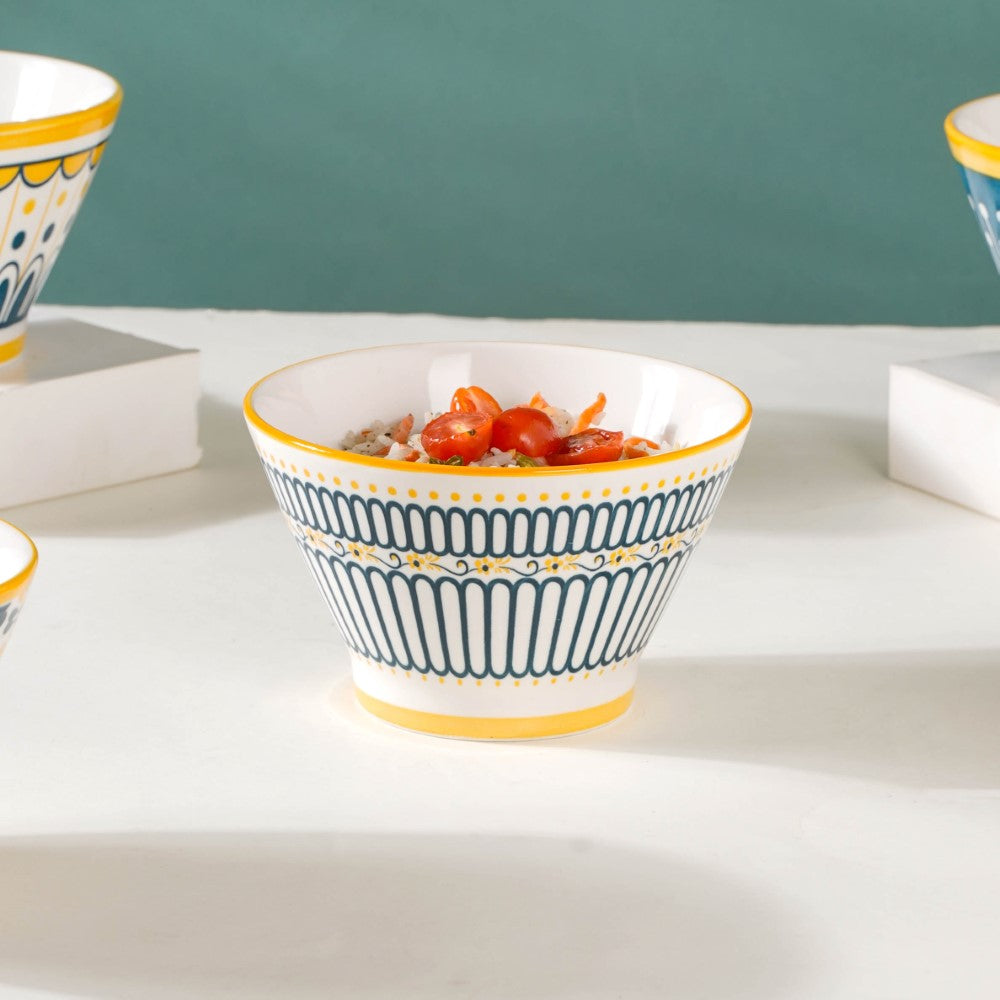 Introducing our exquisite Aloha ceramic snack bowl set, a harmonious blend of elegance and versatility. Crafted with meticulous attention to detail, each bowl showcases a unique pattern, adding a touch of individuality to your dining experience. The enchanting white, yellow, and blue colour scheme unifies the set, evoking a sense of serenity and cheerfulness. Perfect for serving delectable treats, these bowls effortlessly elevate any table setting, be it casual gatherings or special occasions. Made from high-quality ceramics, they offer durability and easy maintenance. Let these captivating bowls adorn your home, infusing every mealtime with style and sophistication. Elevate your snacking experience with our remarkable Aloha snack bowl set today.