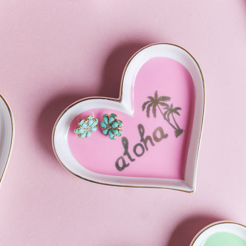 Experience a touch of tropical paradise with our Heart-Shaped Ceramic Small Plate featuring a delightful 'Aloha' greeting and charming coconut trees against a soft pink backdrop. This enchanting ceramic piece brings the spirit of a serene island getaway to your space, making it perfect for holding your cherished trinkets or serving delectable treats with a dash of tropical flair. The heart shape symbolizes love and warmth, making it an ideal gift for loved ones to celebrate special moments. Whether as a stylish accent for your dresser or a delightful addition to your table setting, our Heart-Shaped Ceramic Plate with its tropical 'Aloha' design is sure to evoke the joyous spirit of a beach vacation.