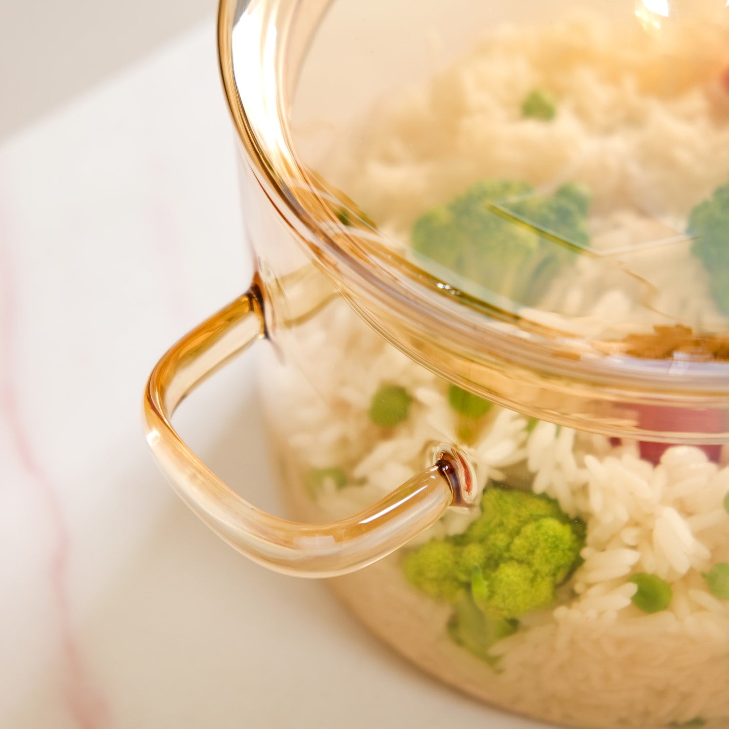 Design: This borosilicate glass cooking pot features a sleek transparent body with a soft amber tint, adding a fresh pop of colour to your everyday cookware. Designed with a medium capacity, it’s great for preparing stews, dals, pastas and one-pot meals. The pot includes a fitted glass lid with a steam vent to help release excess pressure while cooking. The pot stands on a sturdy, flat surface that adds to its balance during cooking. A matching glass lid with a built-in steam vent and a round knob makes opening and closing easy and safe. Its smooth finish and curved silhouette give it a refined look, while the heat-resistant glass ensures it is both sturdy and stylish. A lovely mix of function and flair, this is a standout addition to your cookware range.