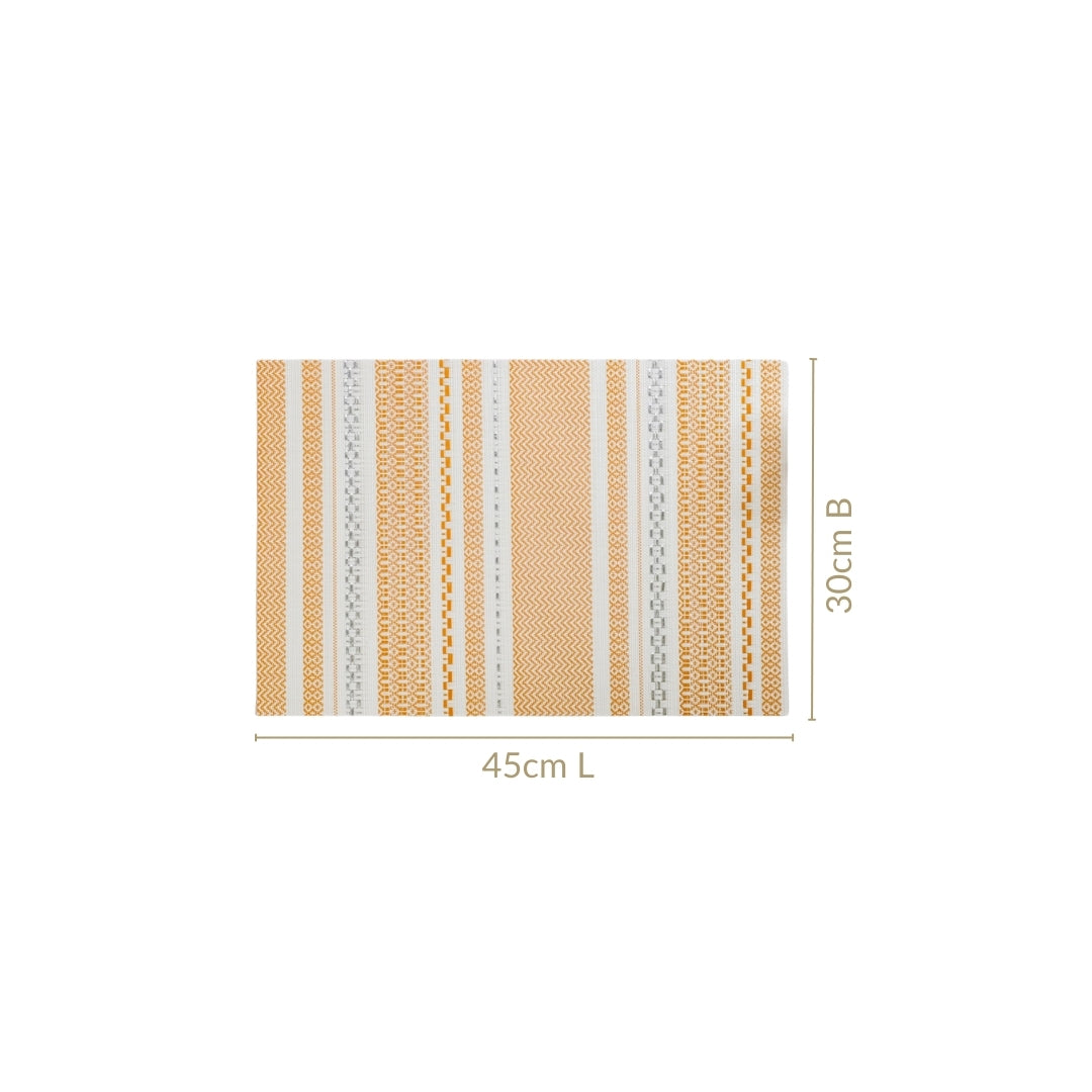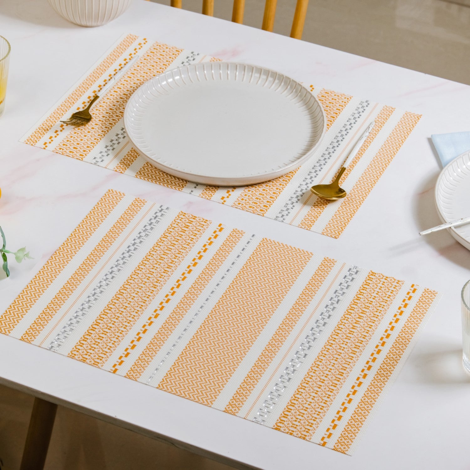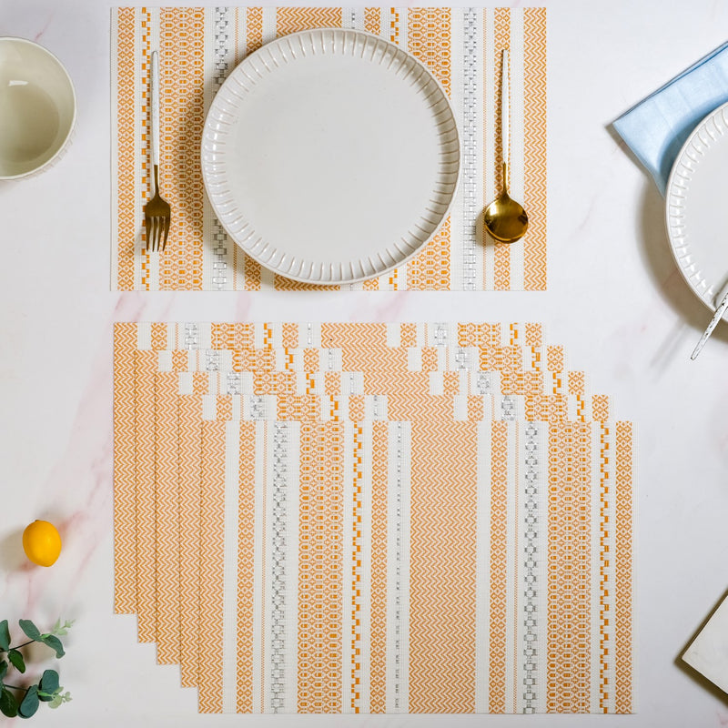 Design: The set is designed with modern geometric patterns, making it the perfect addition to any contemporary dining setting. Crafted from durable PVC, these dining table placemats offer both style and practicality. Their textured surface ensures they stay in place, preventing any slipping during meals. This set includes six placemats, providing ample coverage for a larger dining area while remaining easy to store.