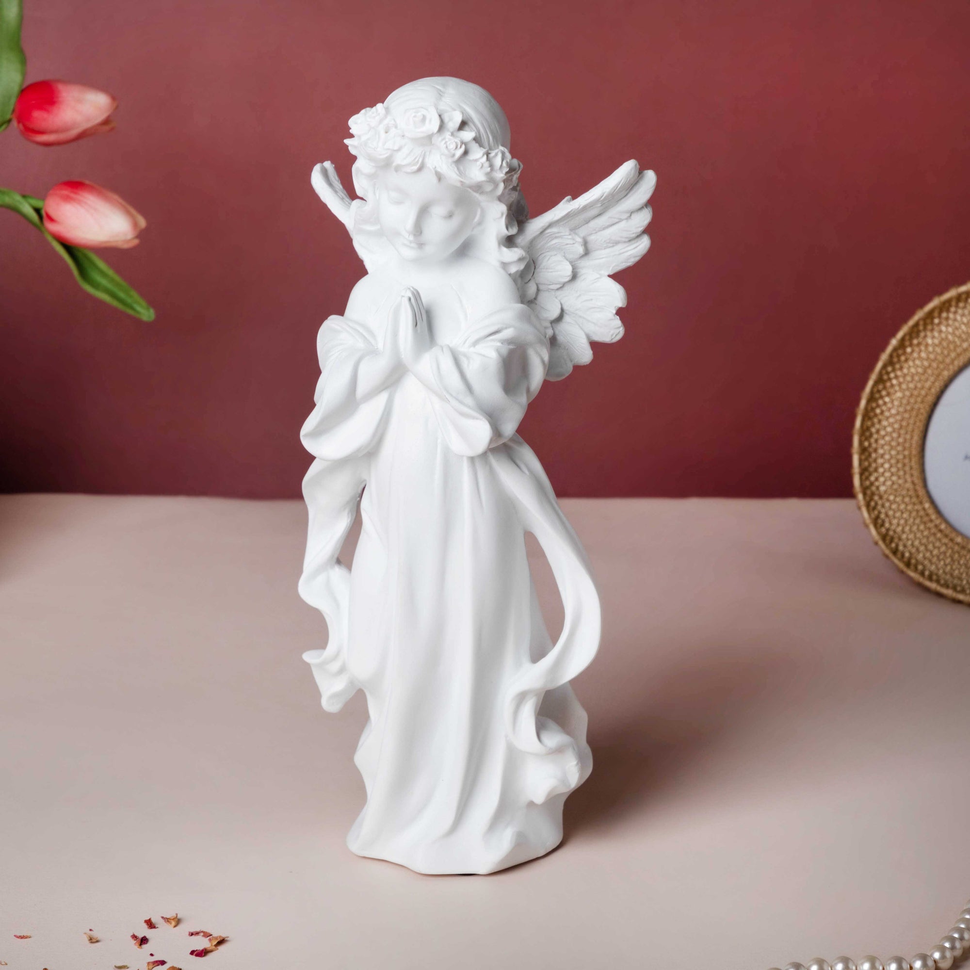 Find a well-lit area, such as a mantelpiece or a side table beside a window, to display your white angel statue at home. Elevate it with a simple pedestal or display stand to highlight the fine features. For an ethereal ambiance, complement your white angel statue with other showpieces with neutral or pastel hues.