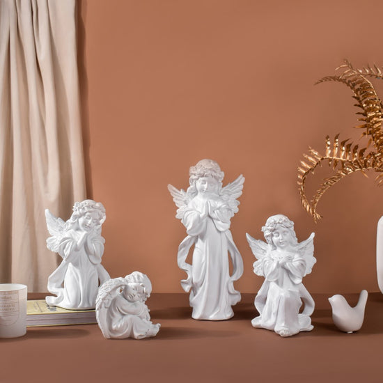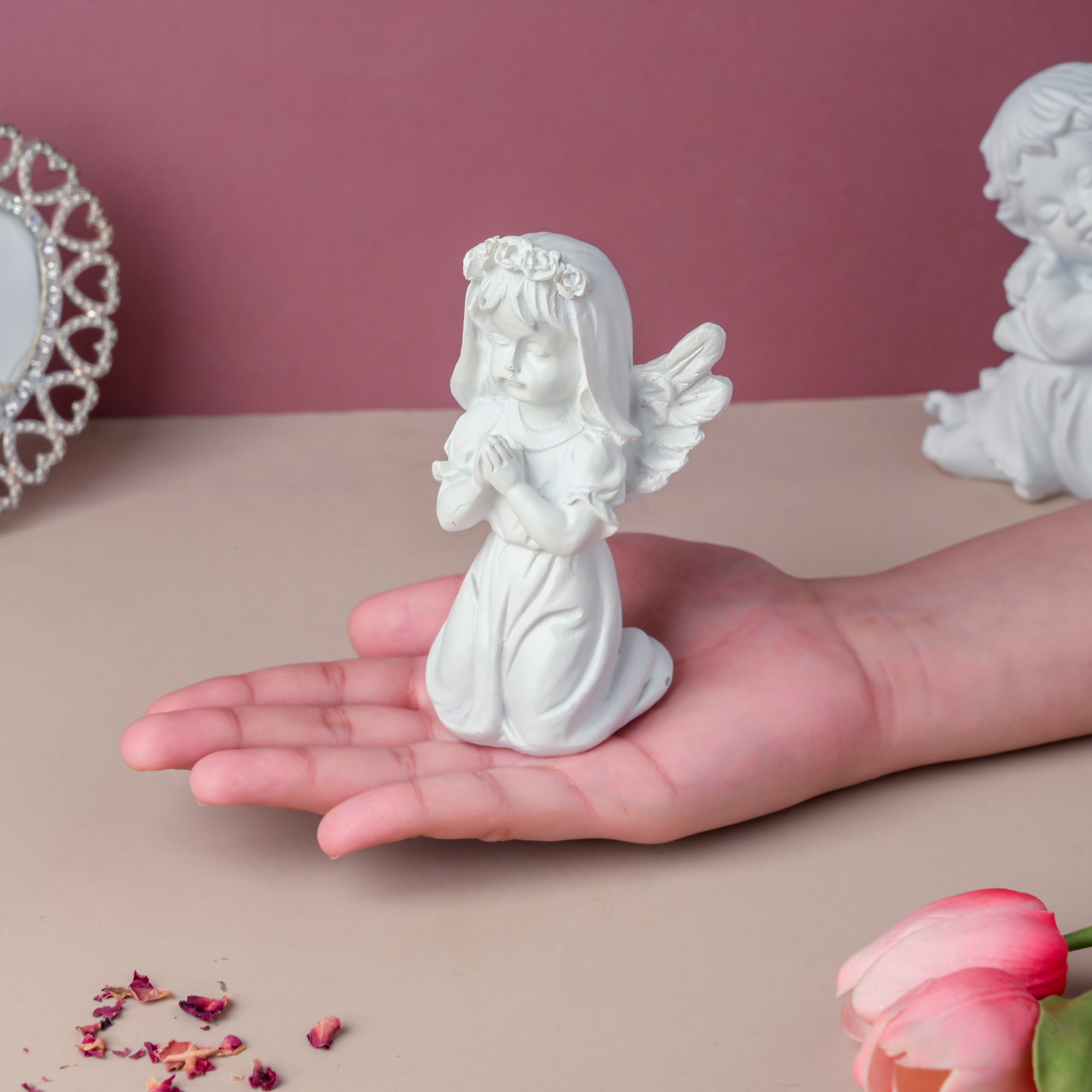 The prayer angel figurine is a sacred and elegant addition to any home decor. With wings on its back and a flower wreath on its head, this heavenly showpiece has a serene vibe that enhances the overall look and feel of the space. The angel figurine adds an attractive touch to the surroundings with its exquisite and divine design, which creates a tranquil and sophisticated ambiance.