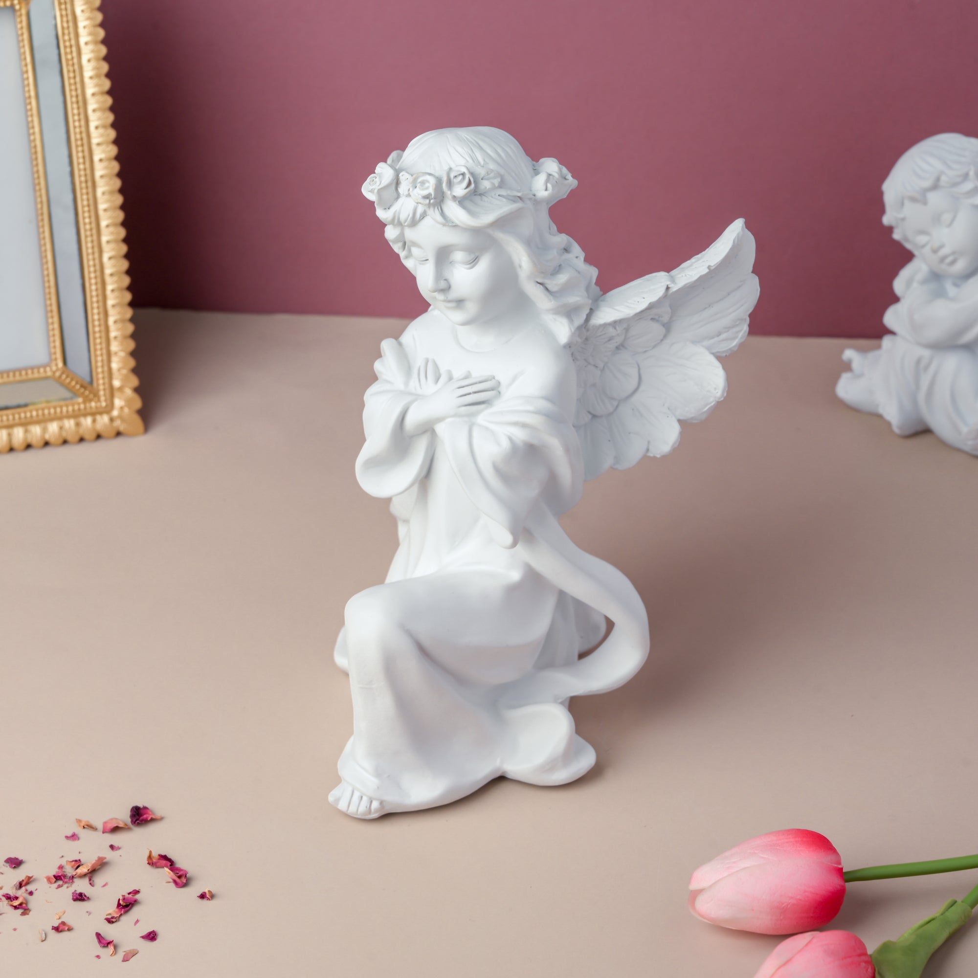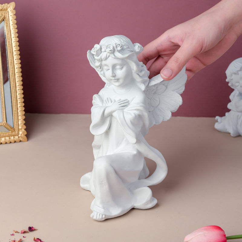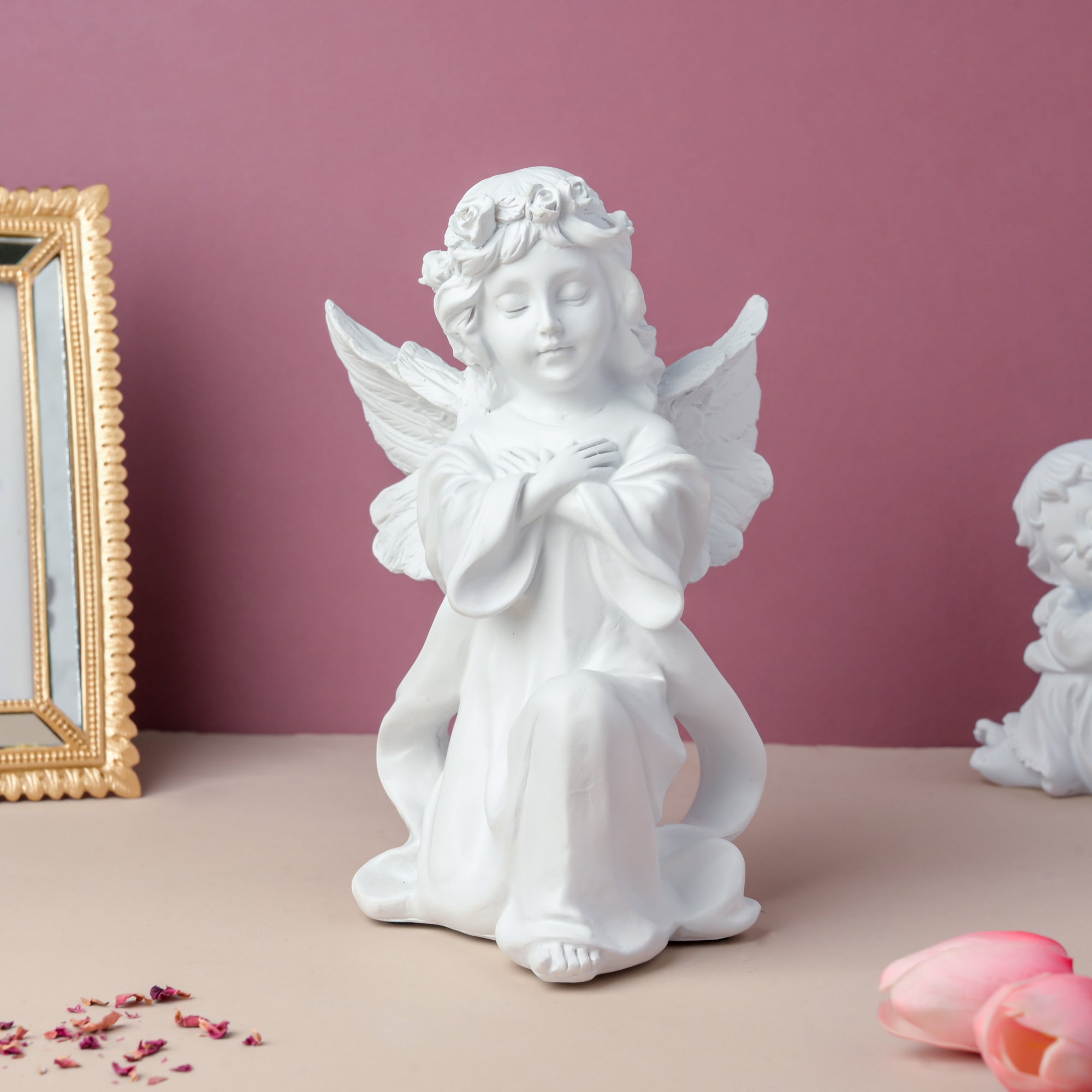 The angel statue showpiece is specially curated to beautify your home decor. The resin showpiece will be suitable to decorate any corner of the house and add a calm vibe to the atmosphere. The angel showpiece holds a peaceful expression and would amp up your home with its bright white color. This angel showpiece is a celestial vision of grace and beauty, crafted with the utmost care and attention to detail.