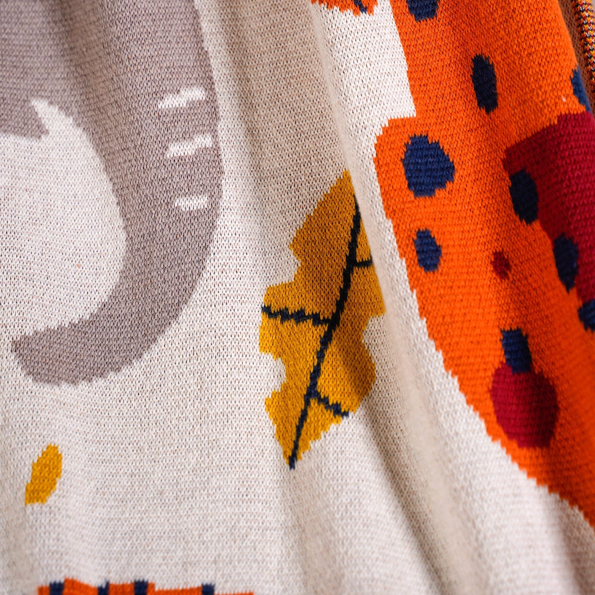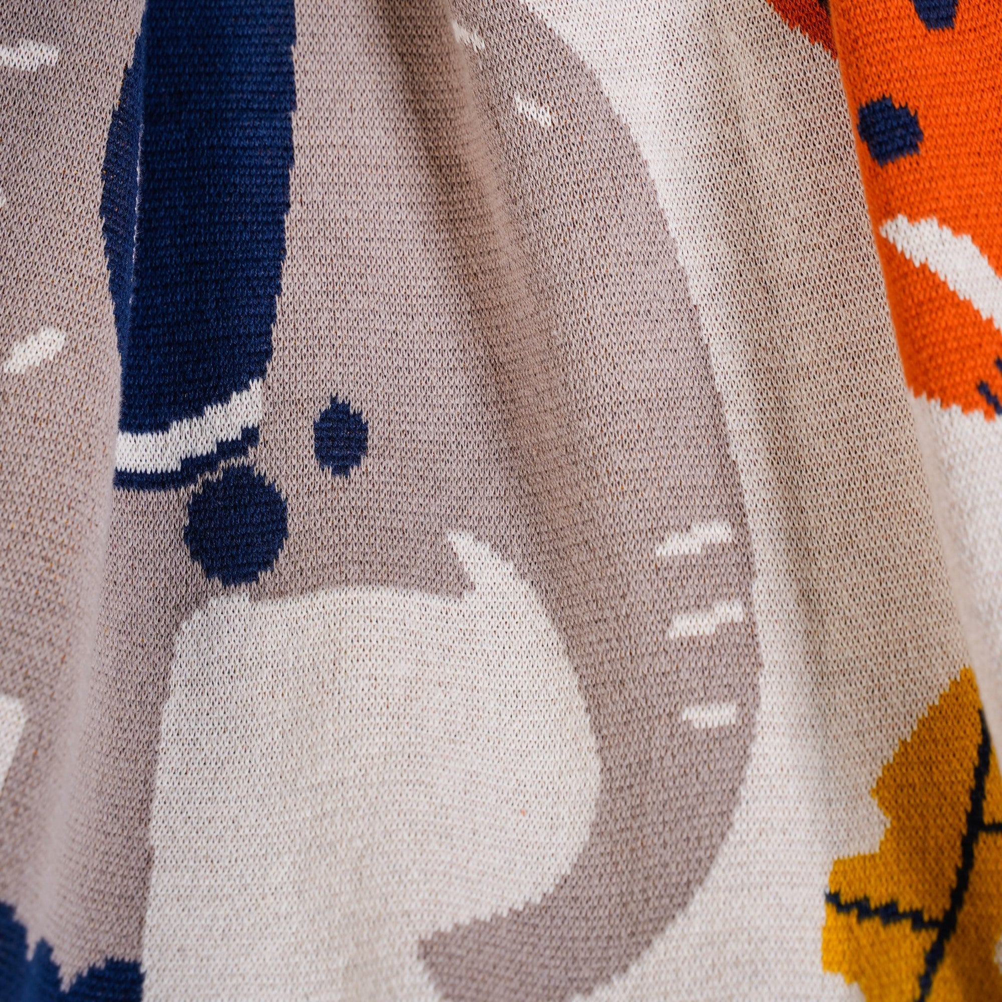 Bring the jungle home with this 100% cotton kids' throw blanket. Designed for comfort, warmth, and play, it’s soft, breathable, and perfect for nap time or decor. With colourful safari animals and a cheerful print, it turns every snuggle into a wild, adventure-filled escape for your little explorer.