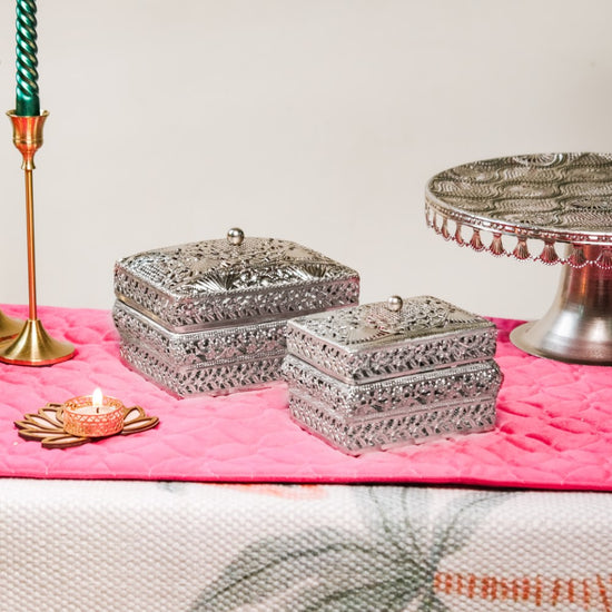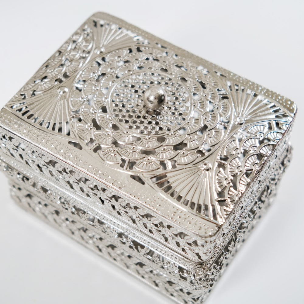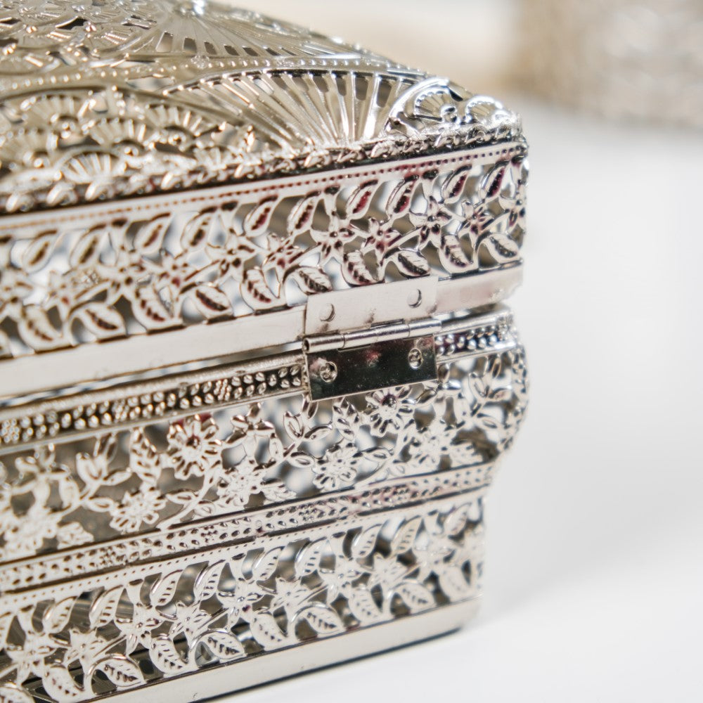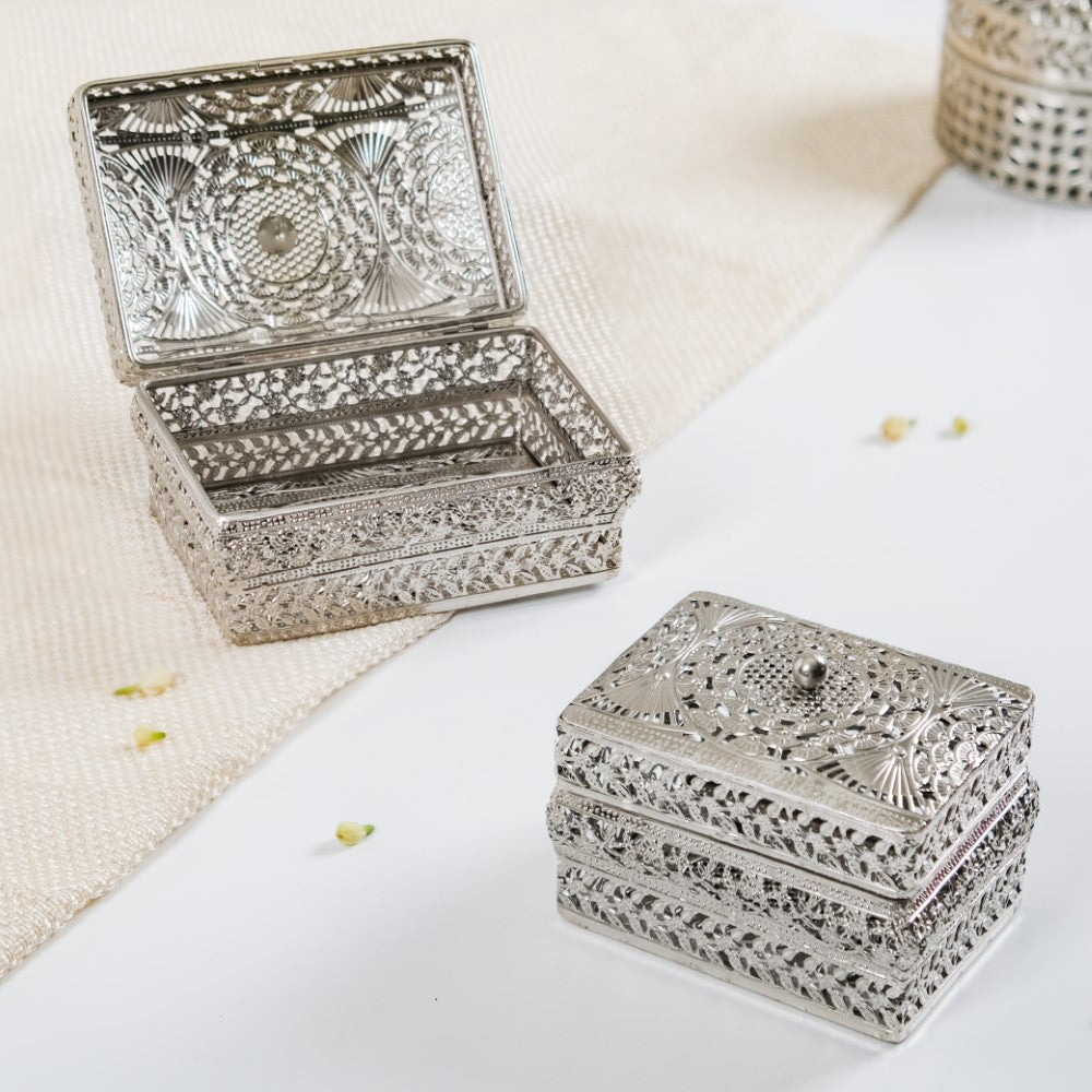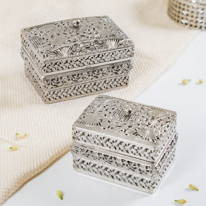 These jewellery boxes are crafted not only for functionality but also to elevate your decor. The intricate antique filigree metalwork and high-sheen silver finish make them exquisite decorative pieces. Display them atop your vanity table to add a touch of sophistication to your space while effortlessly organising your jewellery collection.