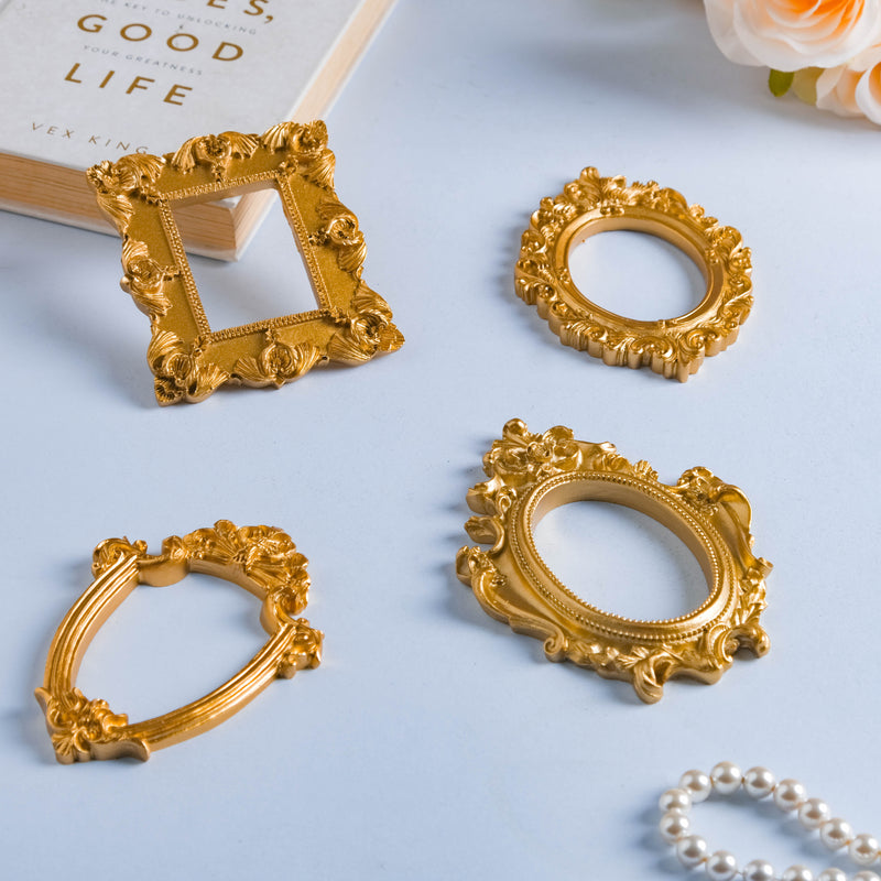 The resin gold antique photo frame is a versatile and stylish frame that can be used to display a variety of different objects, including small art sketches or doodles. The frame's gold finish and antiqued look give it a classic and elegant look that will complement your artwork. The frame is also relatively small and lightweight, making it easy to display on a desk, shelf, or other surface.