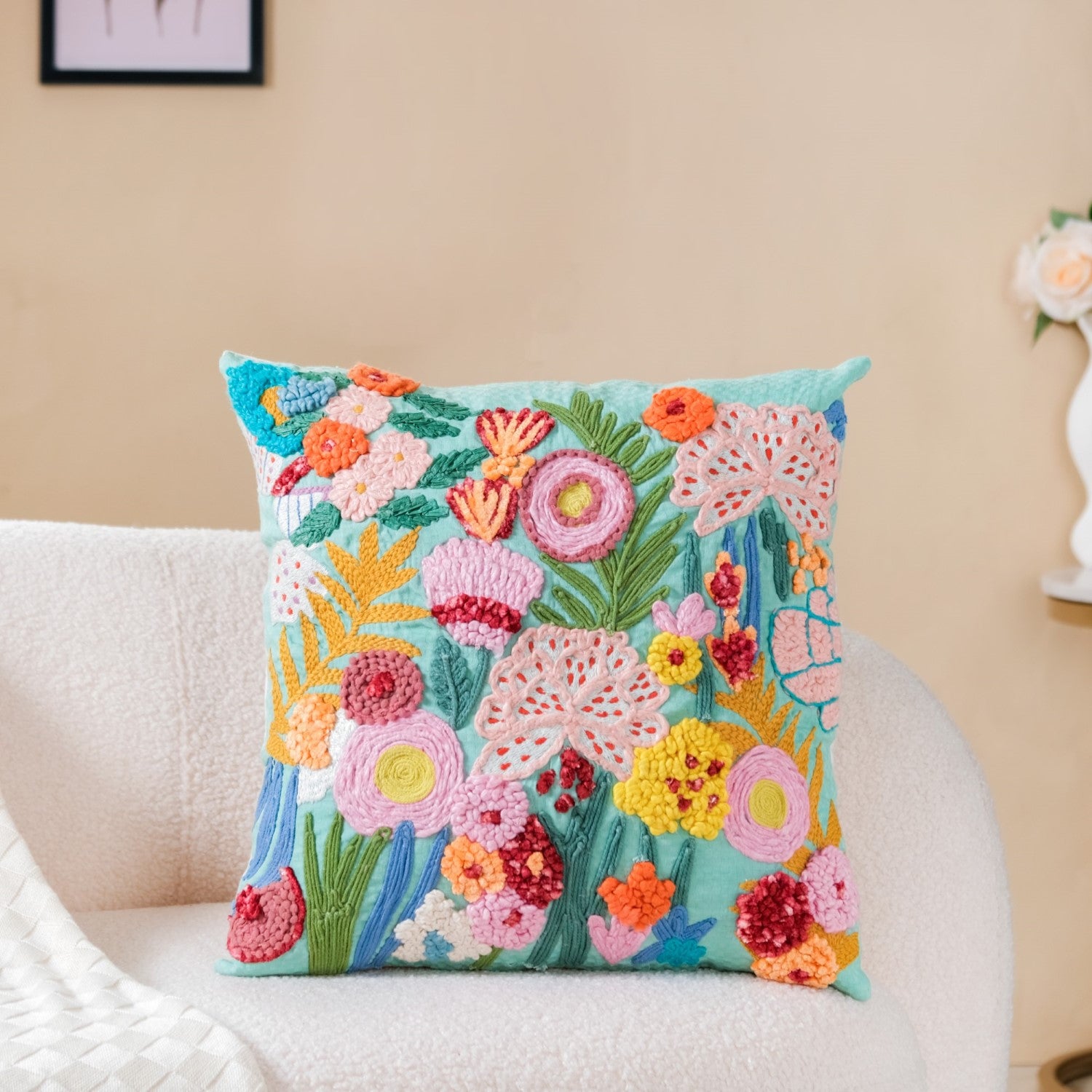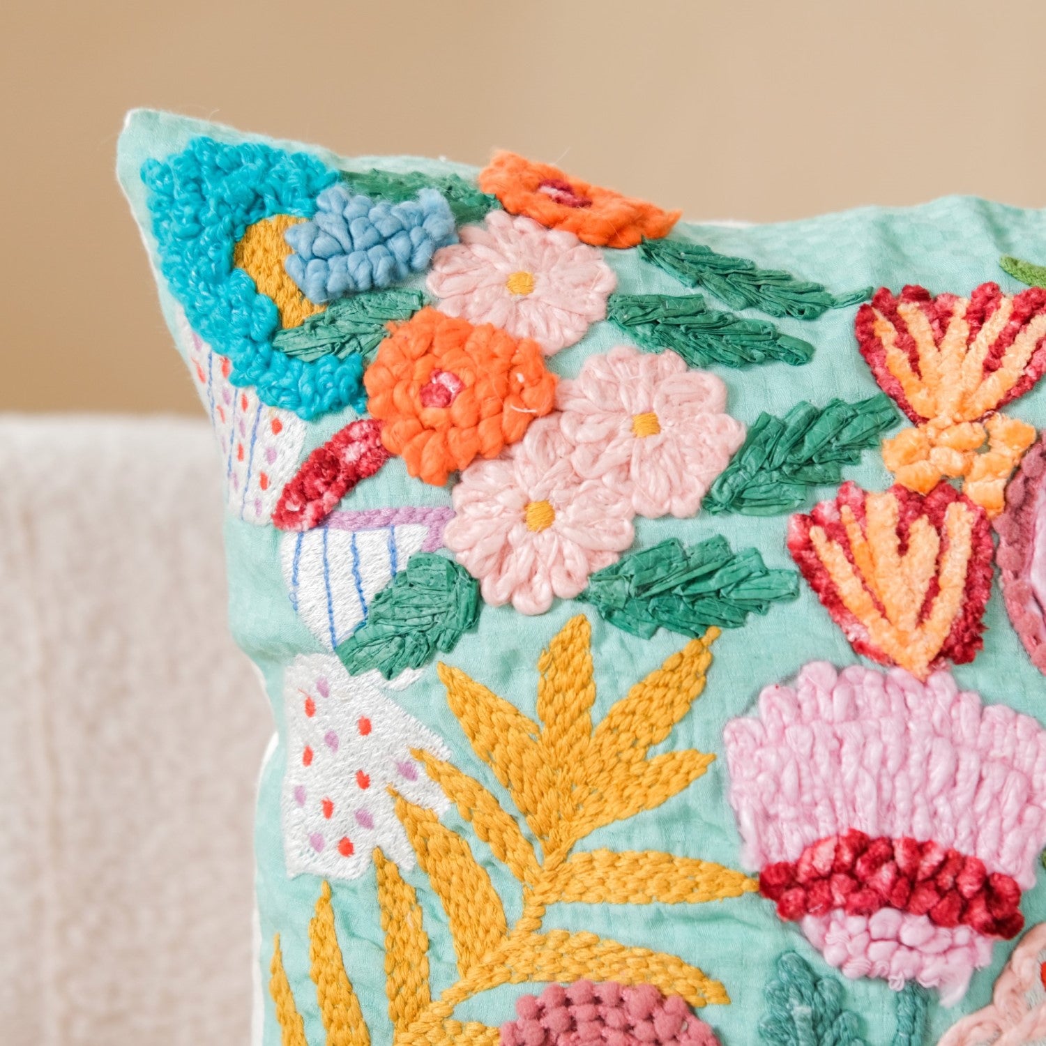 Yes, the cushion cover is suitable for use throughout the year. Its cotton base provides breathability in warmer months while still adding a cozy touch during cooler seasons.