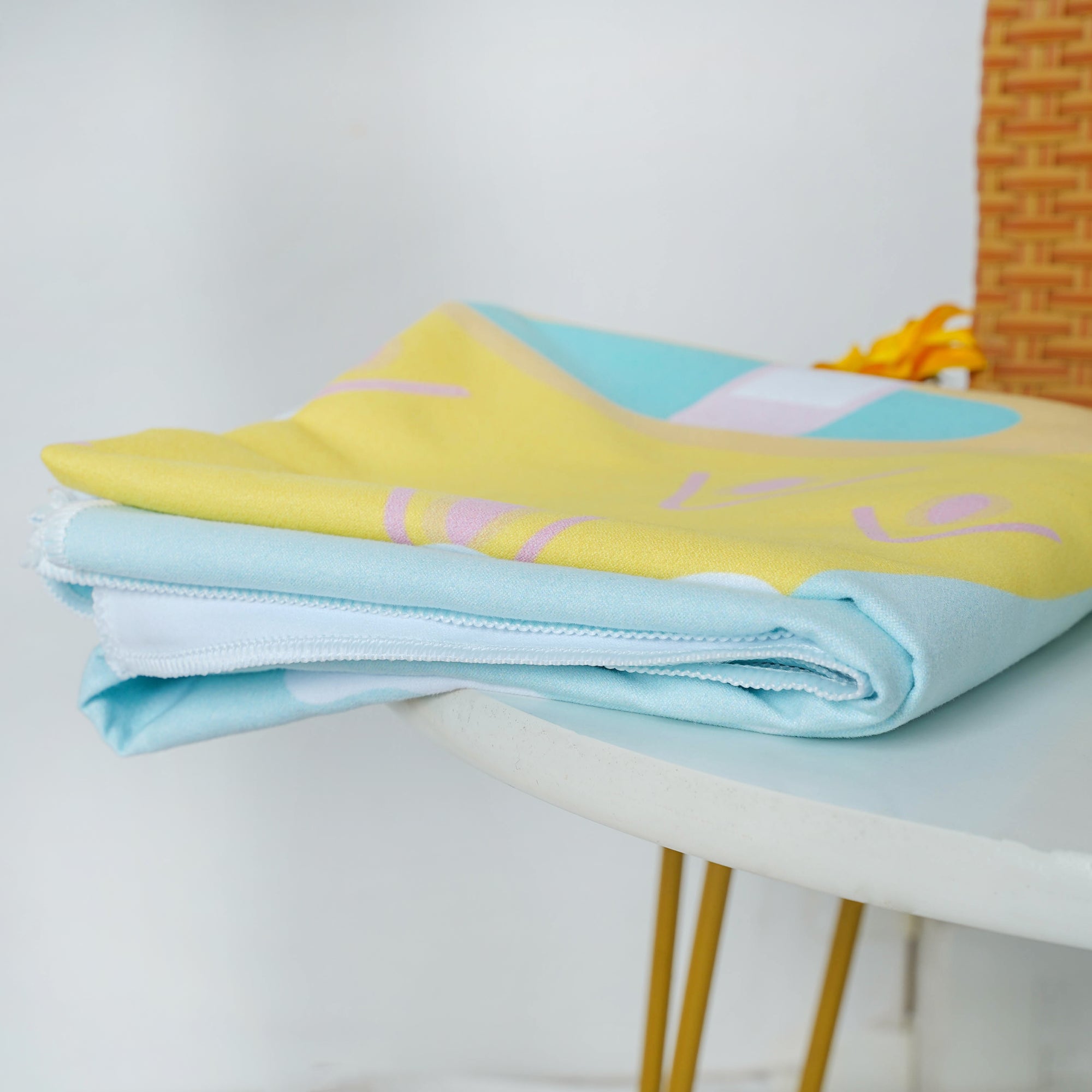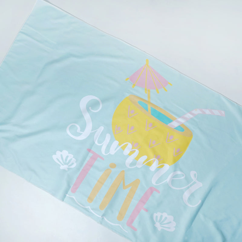 Get ready for summertime with the compact beach towel made of excellent quality material. The multipurpose towel can be used as a bath towel, kitchen towel, baby towel, travel towel and so on. The soft thin towel has superior absorbency and provides utmost comfort, making the skin feel soft and dry within fractions of seconds. The print of the pina colada on the light blue towel with Summer Time written in bold underneath adds to the appealing factor of the towel.