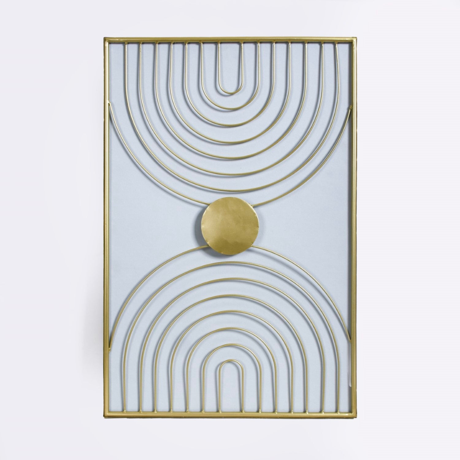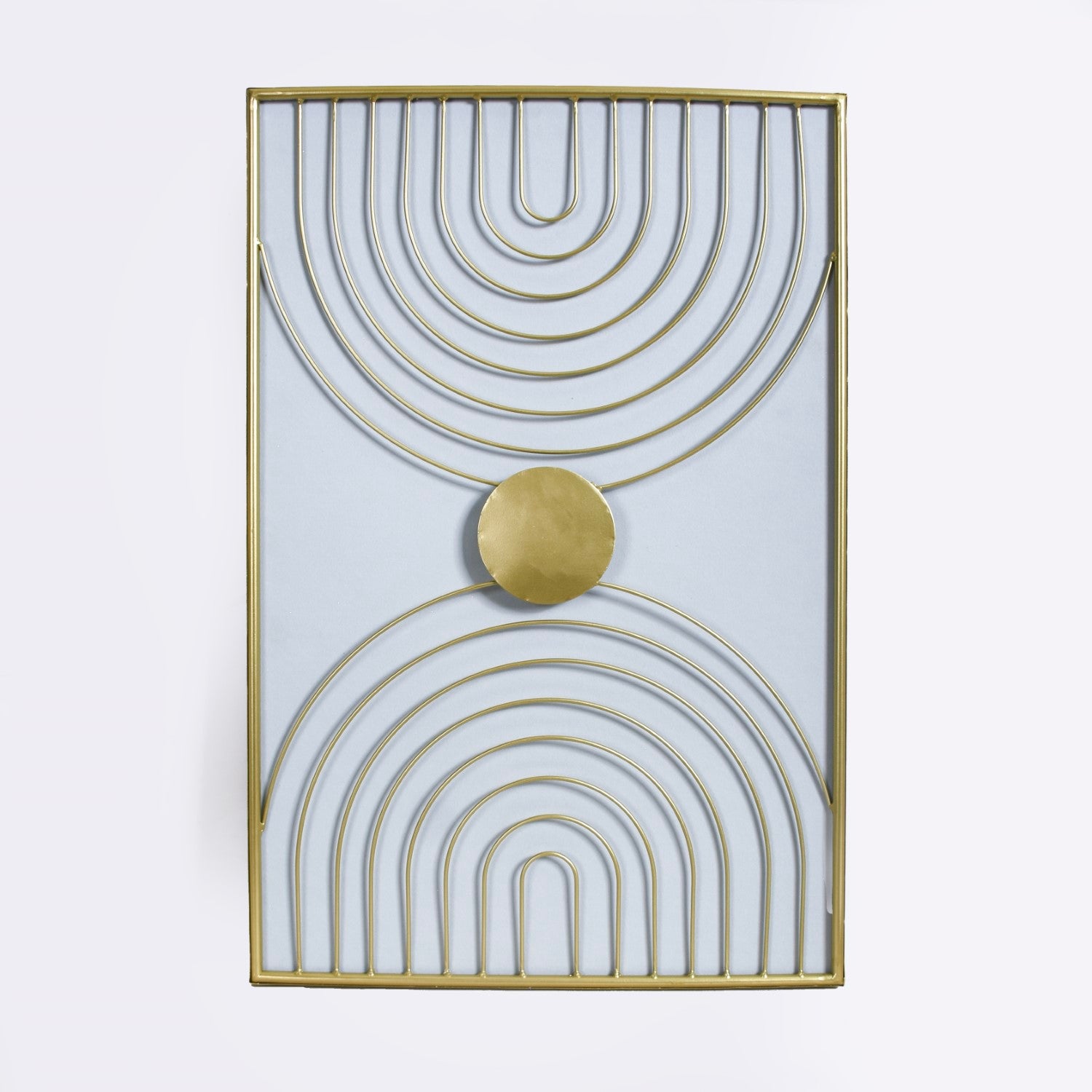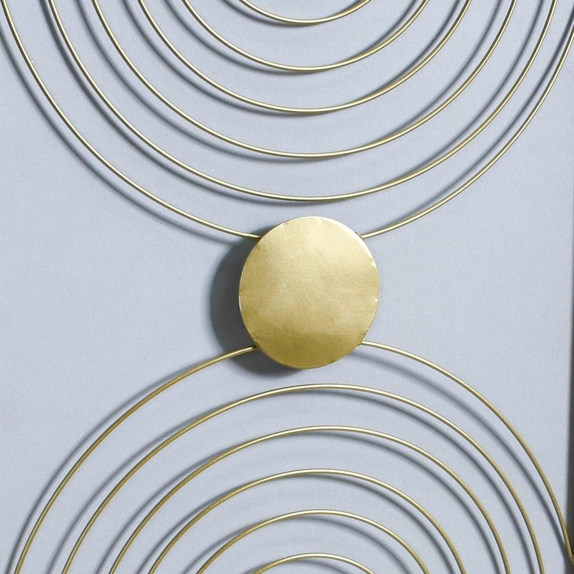 Crafted painstakingly from premium quality metal, the wall art features arched lines that resemble the bands of two rainbows passing through a centrally located sun. The restrained colour palette and the use of clean lines and geometric shapes embody the spirit of modern minimalism.