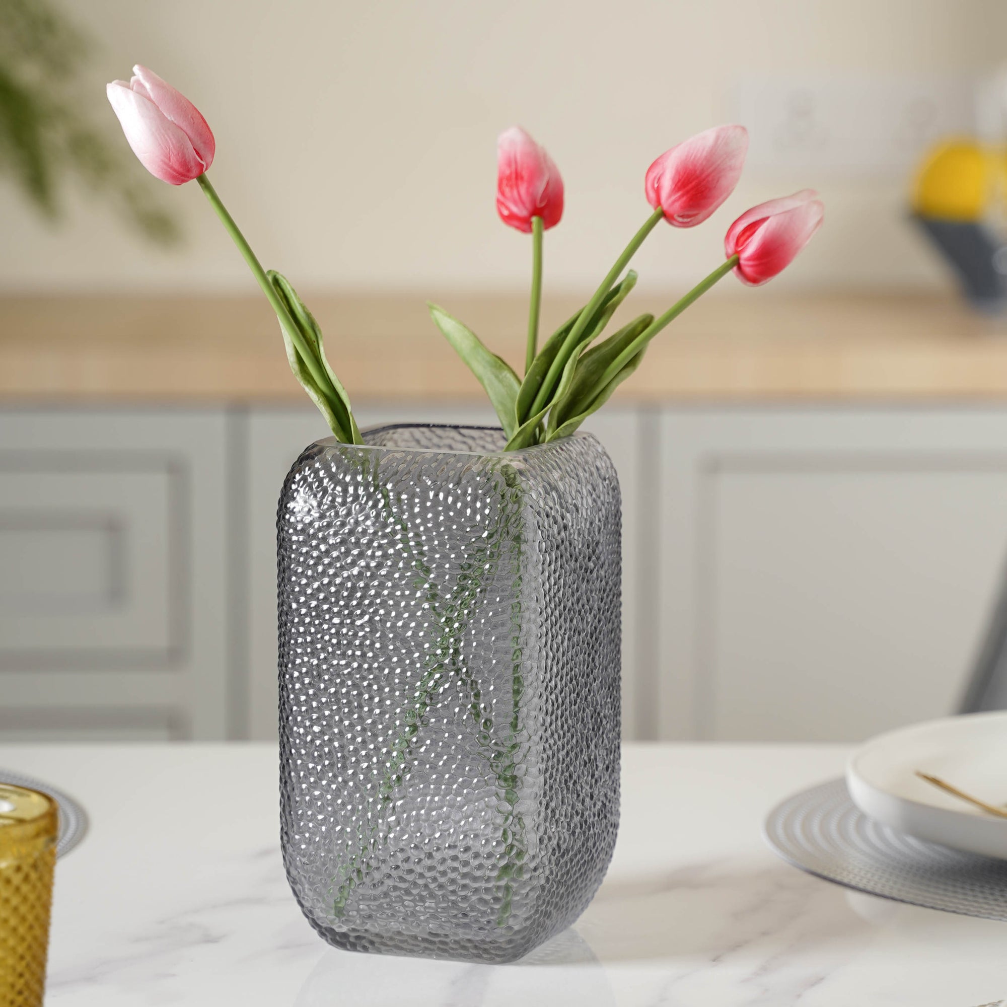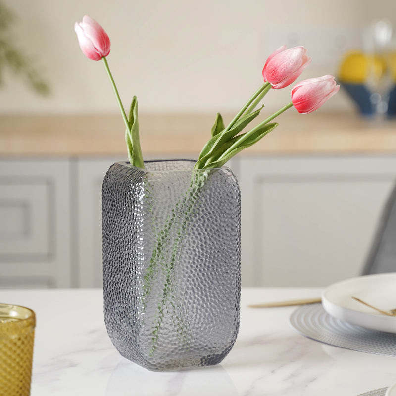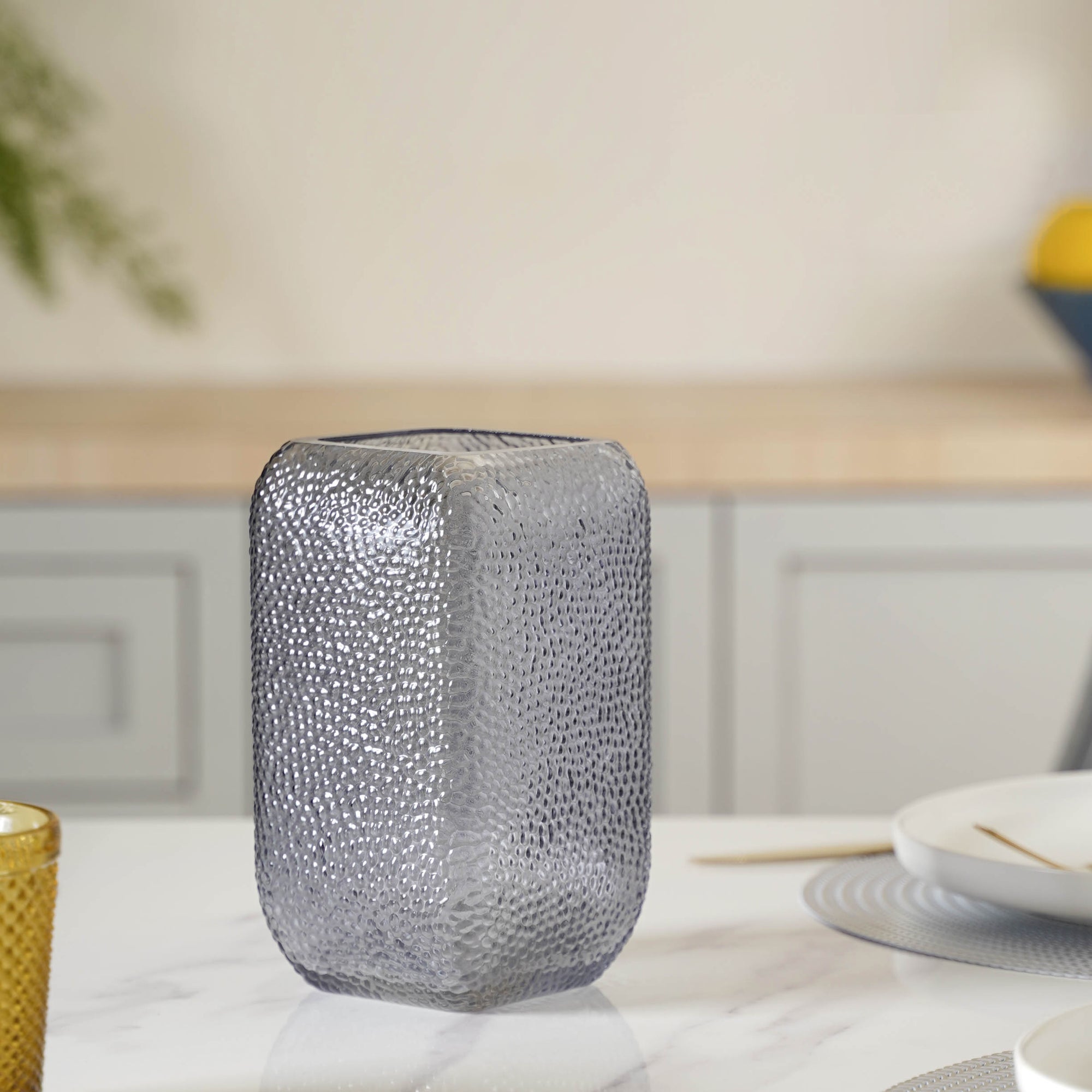 The lovely hand-blown glass vase is the ideal addition to the coffee table design. The glass vase adds a rich touch to the beautiful décor and creates a spectacular impression in the living room or dining room. The vase's simple lead-free material and shape make it the apt product for decorating tables and shelves by grouping together similar pieces of varying shapes and sizes. The crystal glass vase with a textured pattern is an excellent housewarming gift for friends and family. The vase is a great addition to any living room for a refreshing appeal.