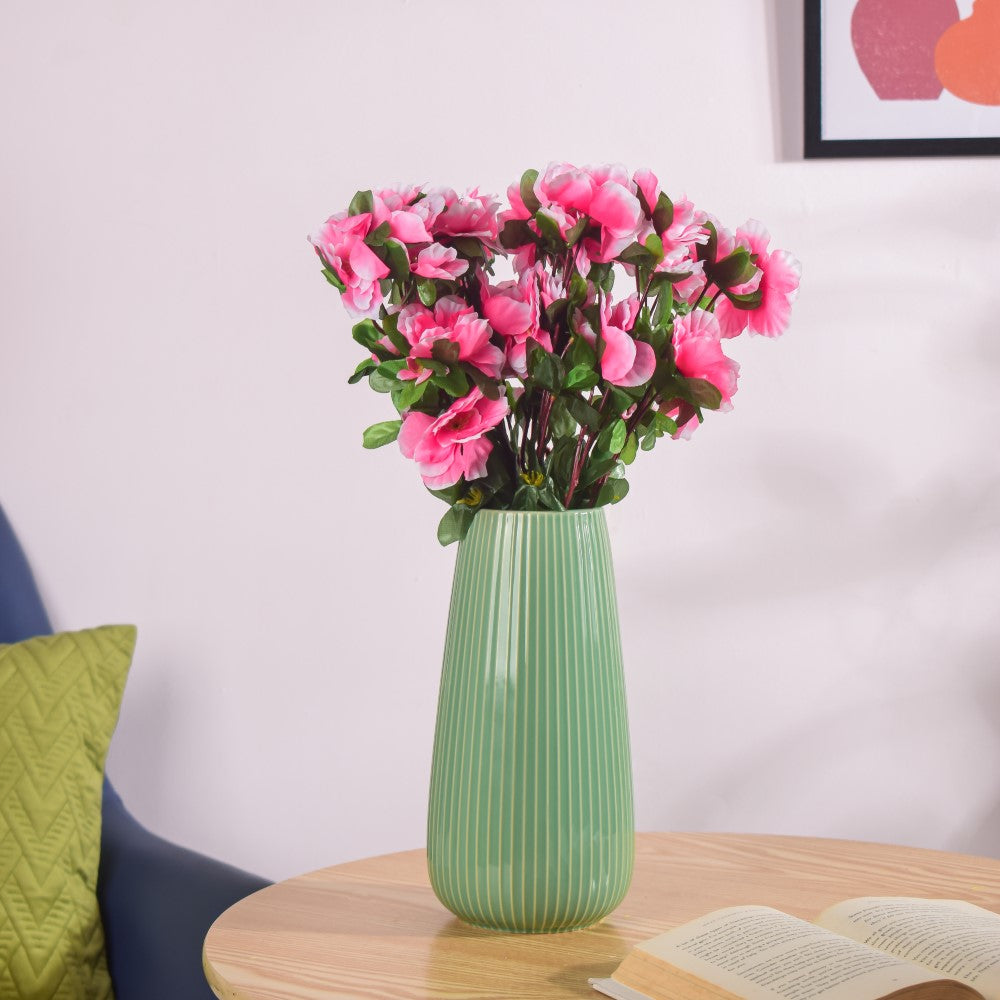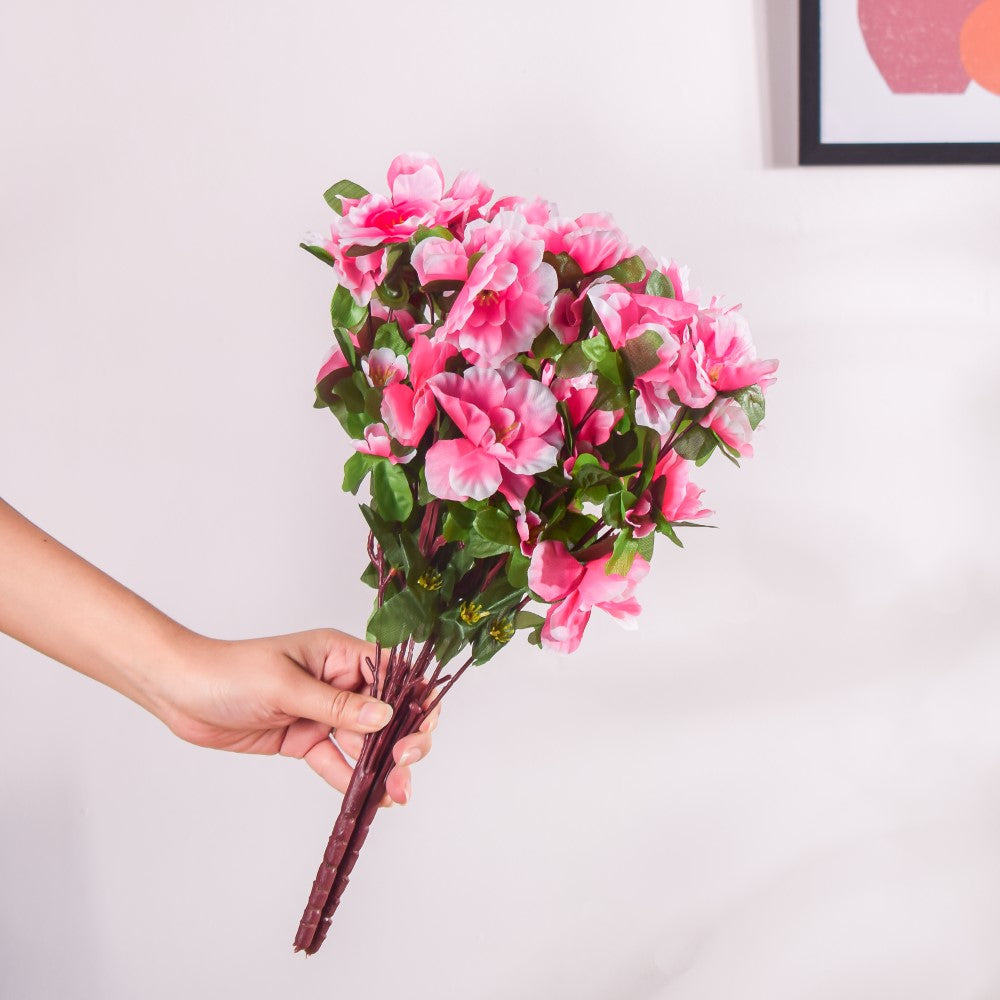 The pink, bloomed azalea stems are the ideal decorative accent that every home must have. Silk is used for the petals, while a robust material is used for the stem. The artificial azalea blossoms will also work miracles for you because the azalea is regarded as a sign of riches. Give the pair of faux azalea stems to someone you want to let know good things are on the road for them.