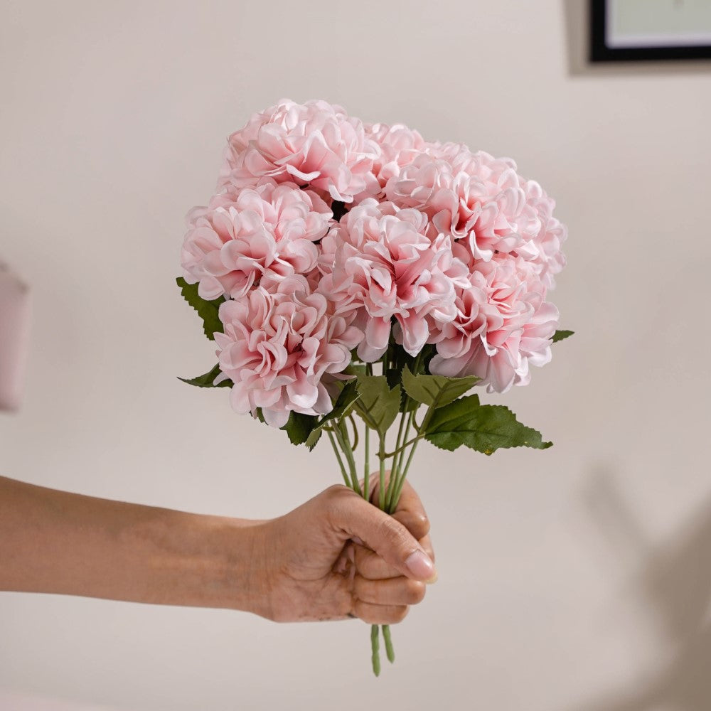 The delicate and colourful bouquet features five fluffy, pink chrysanthemum heads that are sure to brighten up any room decor. The artificial flowers, unlike the fresh flowers, won't wilt or die, which makes the chrysanthemum vase decoration a perfect addition to your home or office table decor. The bouquet is that home decor item that is perfect for adding a touch of whimsy to any decoration. The artificial flowers can be gifted on occasions like anniversaries, or Valentine's Day, to brighten up their day.