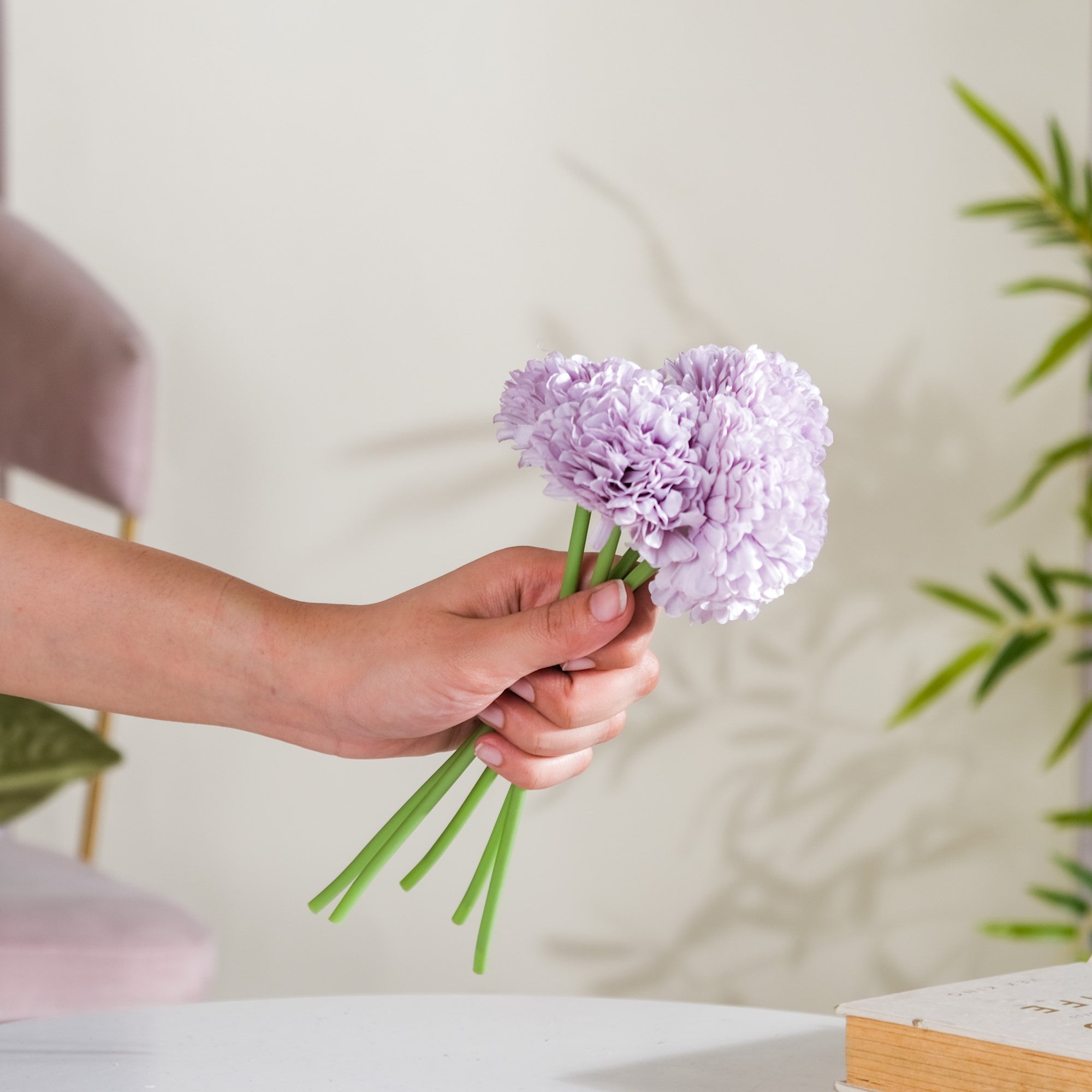 Add a touch of enchantment to your surroundings with our artificial purple chrysanthemum flower stems. Exuding an air of mystique and allure, these lifelike blooms are sure to captivate any onlooker. Each bunch comprises five meticulously crafted chrysanthemum flowers in a rich, vibrant shade of purple, offering a burst of colour and beauty to your floral arrangements. With their maintenance-free nature, these faux stems provide the everlasting charm of chrysanthemums without the need for watering or upkeep. Whether adorning your home, office, or special event, our purple artificial chrysanthemum flower stems bring an element of elegance and sophistication to any space.