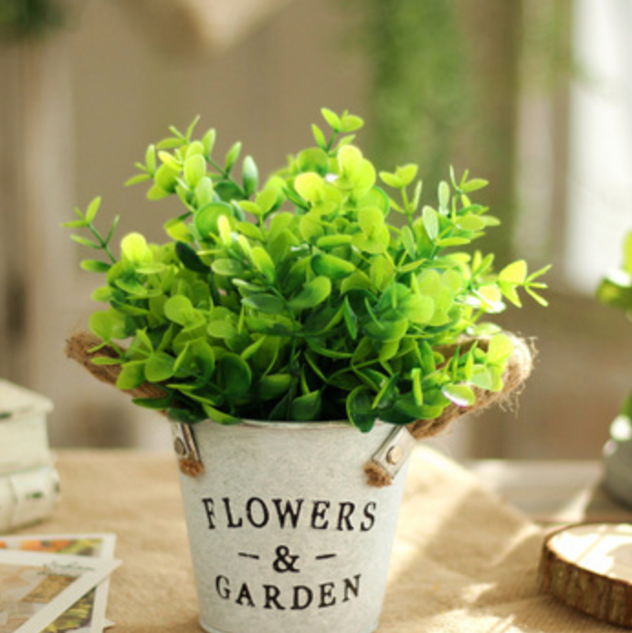 A metal bucket vase with artificial plant that will always remain fresh and add vibrance to any space in your home. The metal bucket vase adds a rustic vintage charm. The faux greens in vase can be given as gift on any occasion.
