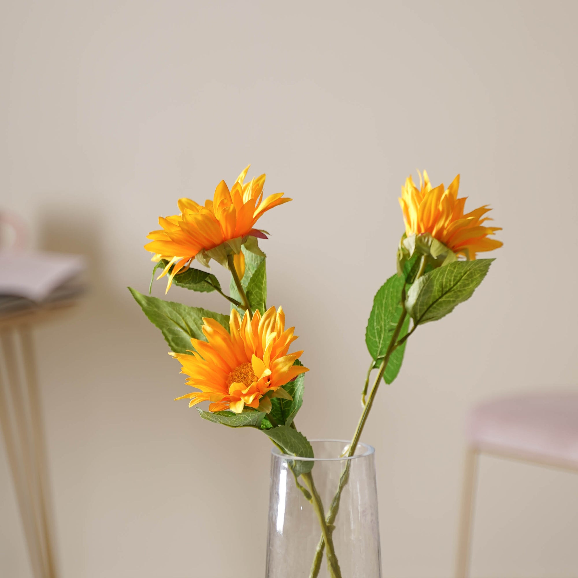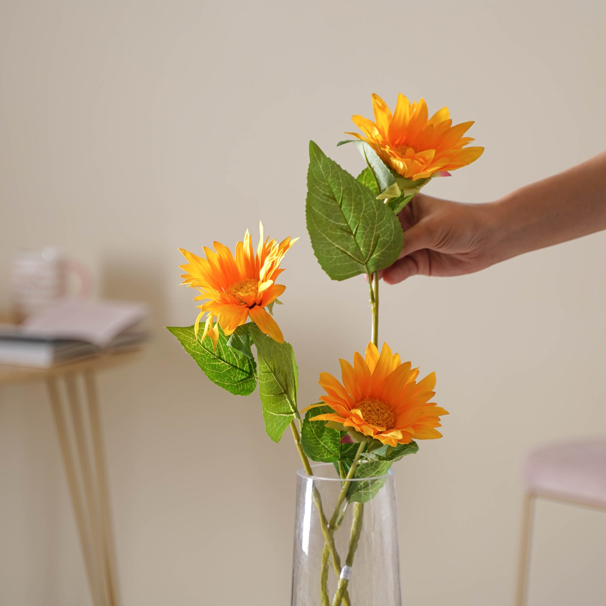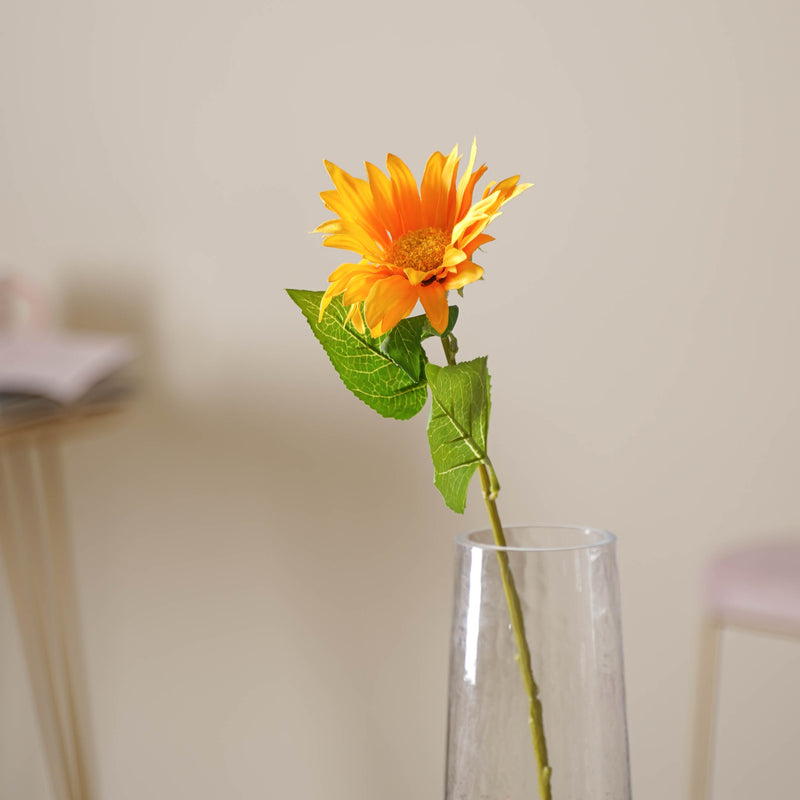 Add some floral fun to the home interiors and restore evergreen freshness by including artificial sunflowers into the home that last much longer. The yellow sunflower has been crafted to perfection to give it a lifelike appearance and can be sprayed with scents to create the right mood for a party or get-together. Pair up the yellow sunflowers with other color variants to add a pop of color to the house. A bouquet of sunflowers displayed in a vase at the home entrance would create a rather welcoming atmosphere for friends and family members. Nestip: Arrange the flowers into a bouquet to gift to friends and family. Size: 49cm Color: Yellow and green Material: PU silk Products included: 1 flower stick Style: GHF213