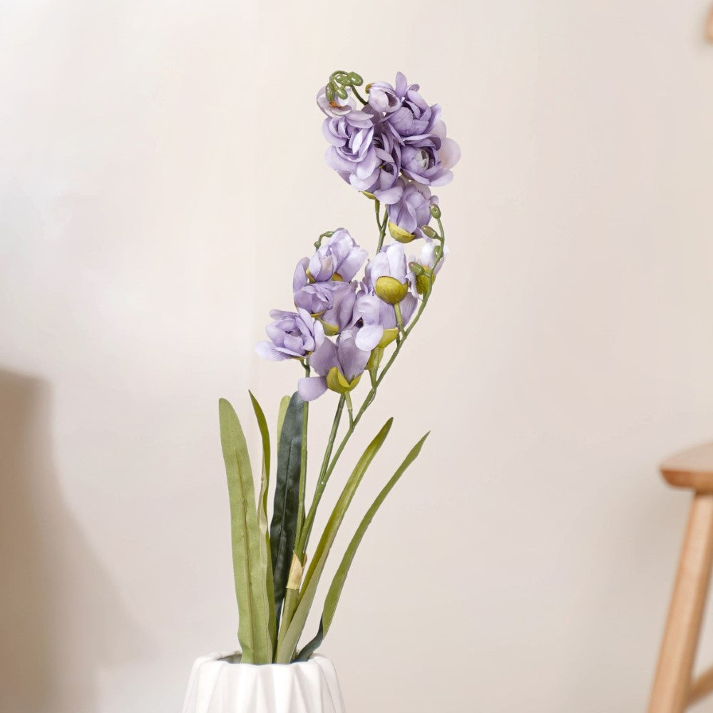 The beautiful artificial flower stem is a gorgeous addition to make to one's home and the best part is that it would last forever rather than withering away. The faux flowers look great in a vase by themselves or as part of a large bouquet, made for a special occasion. The flower stem is available for purchase in two colors- purple with green and pink with green. Both the variants when placed together would further add to the beauty of the arrangement. Nestip: To put on the headboard, make a flower garland of the artificial flowers. It also gives your bedroom a splash of color, interest, and a pleasantly warm feel. Size: 104cm Color: Purple and pink with green Material: PU silk Products included: 1 flower stick Style: Purple- GHF181 Pink- GHF182