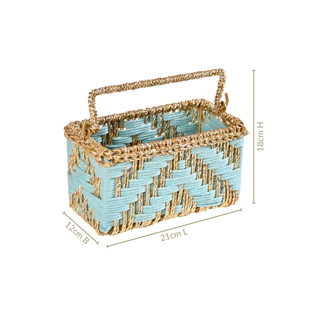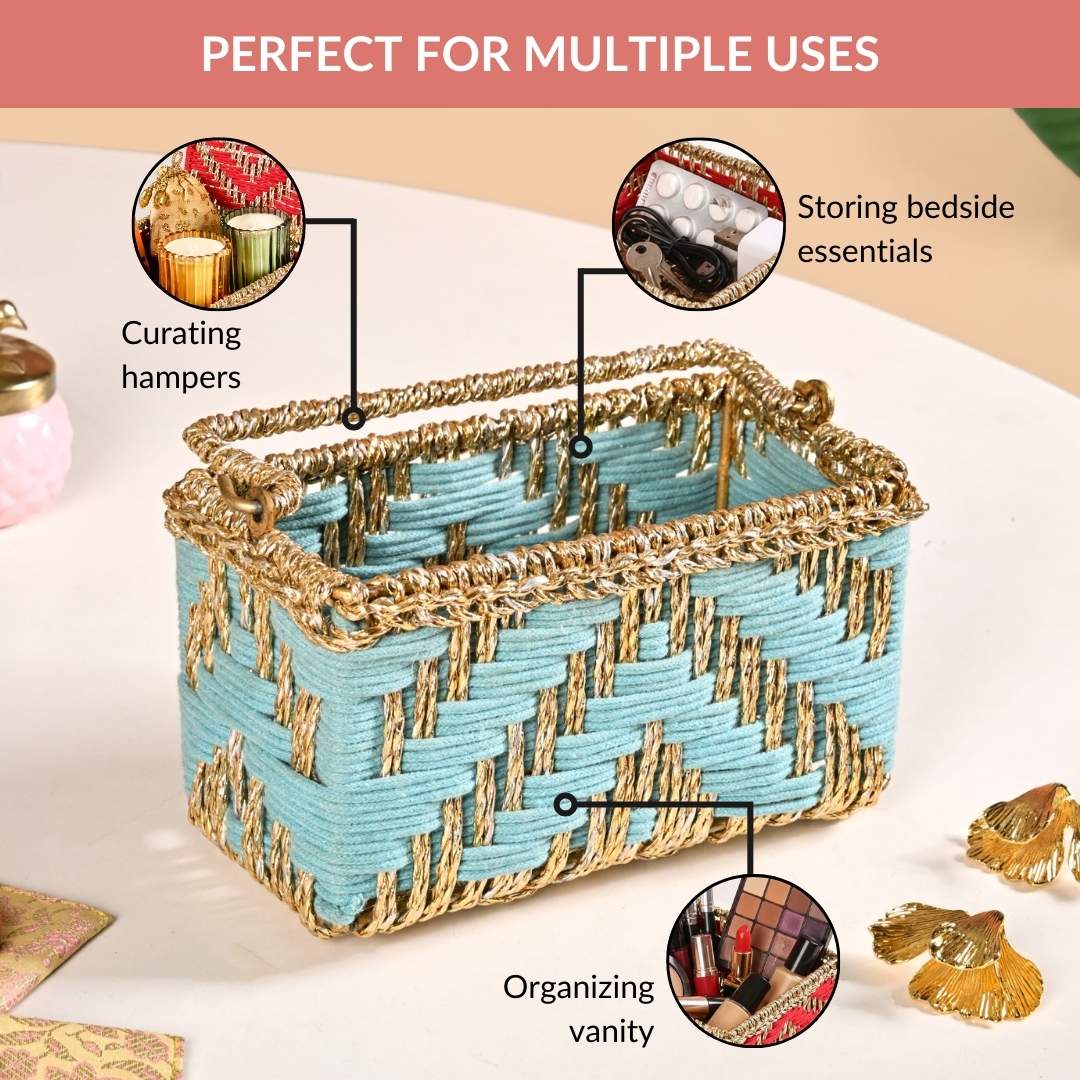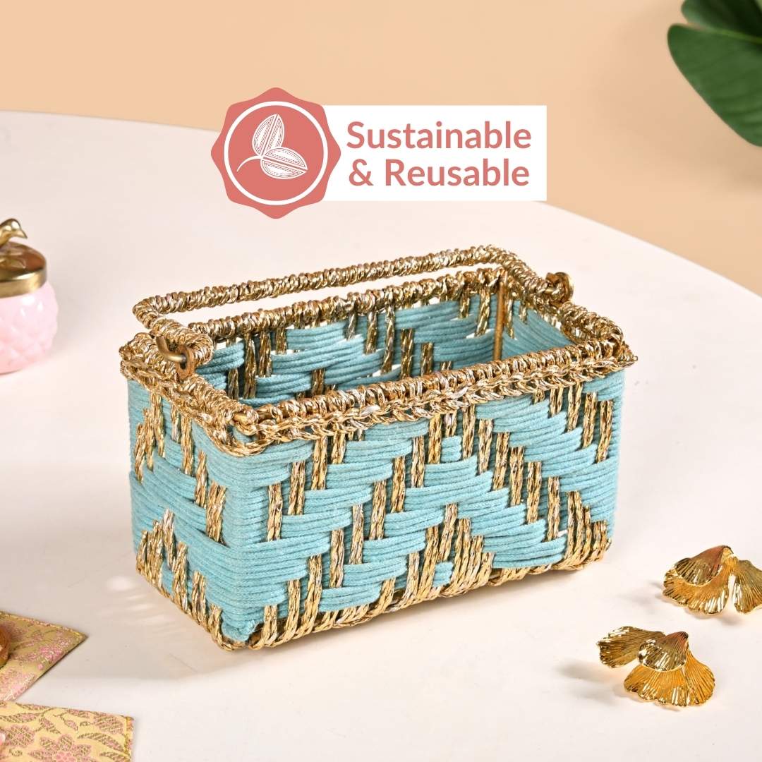 Artisanal Organiser And Hamper Basket Blue And Gold