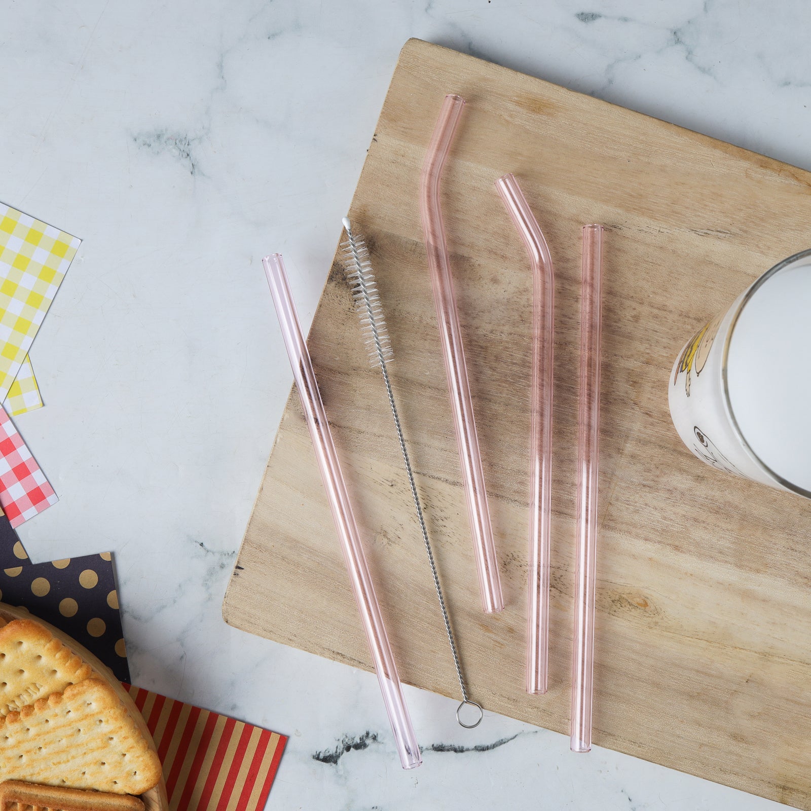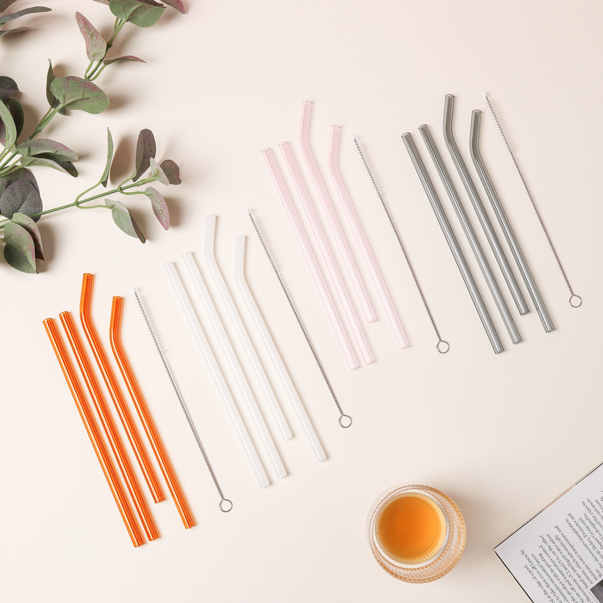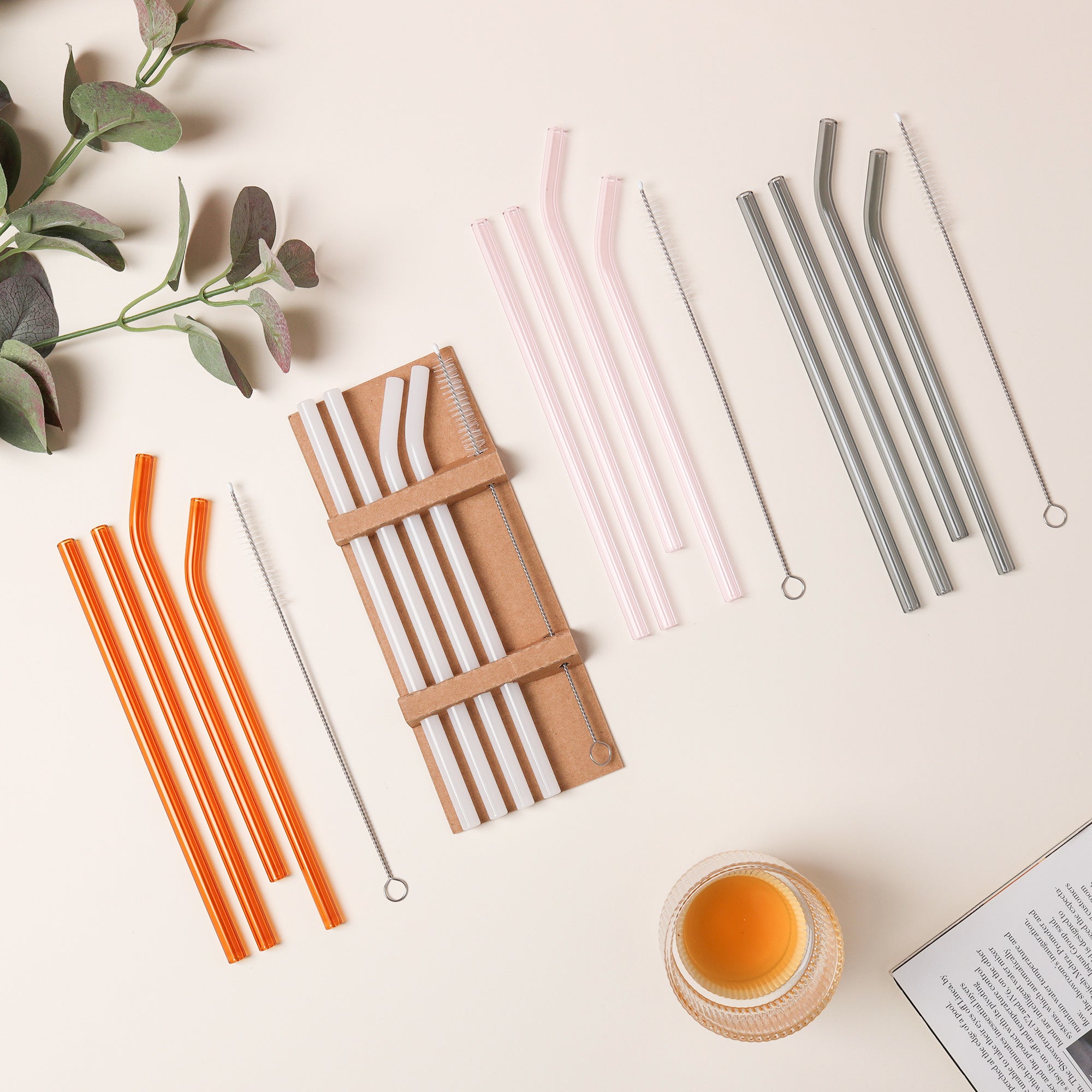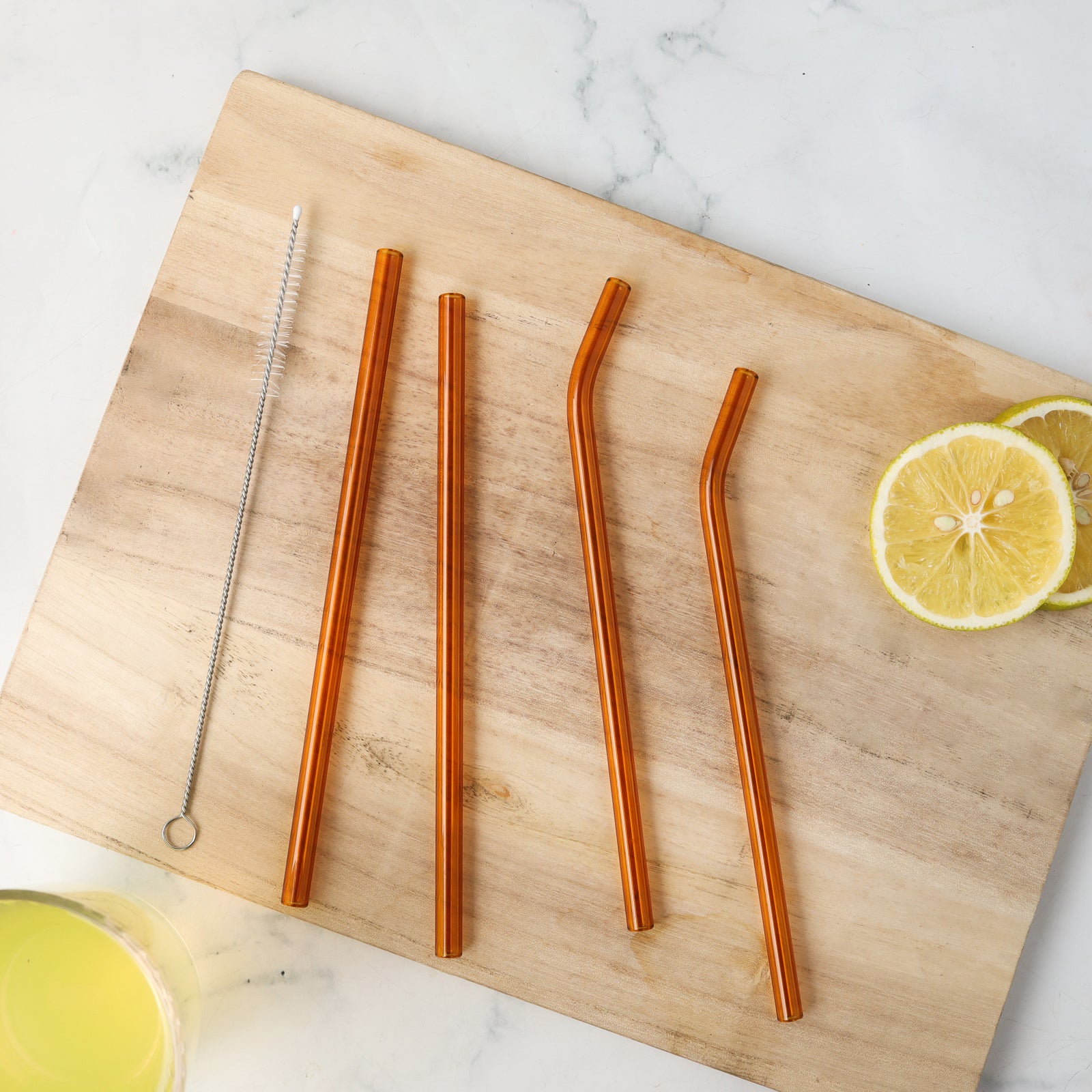Products included: 4 glass straws and 1 cleaning brush